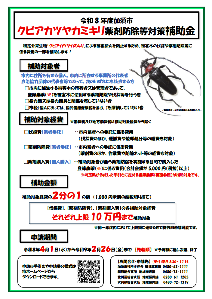 【令和8年度】加須市クビアカツヤカミキリ薬剤防除等対策補助金チラシ (PDFファイル: 198.0KB)