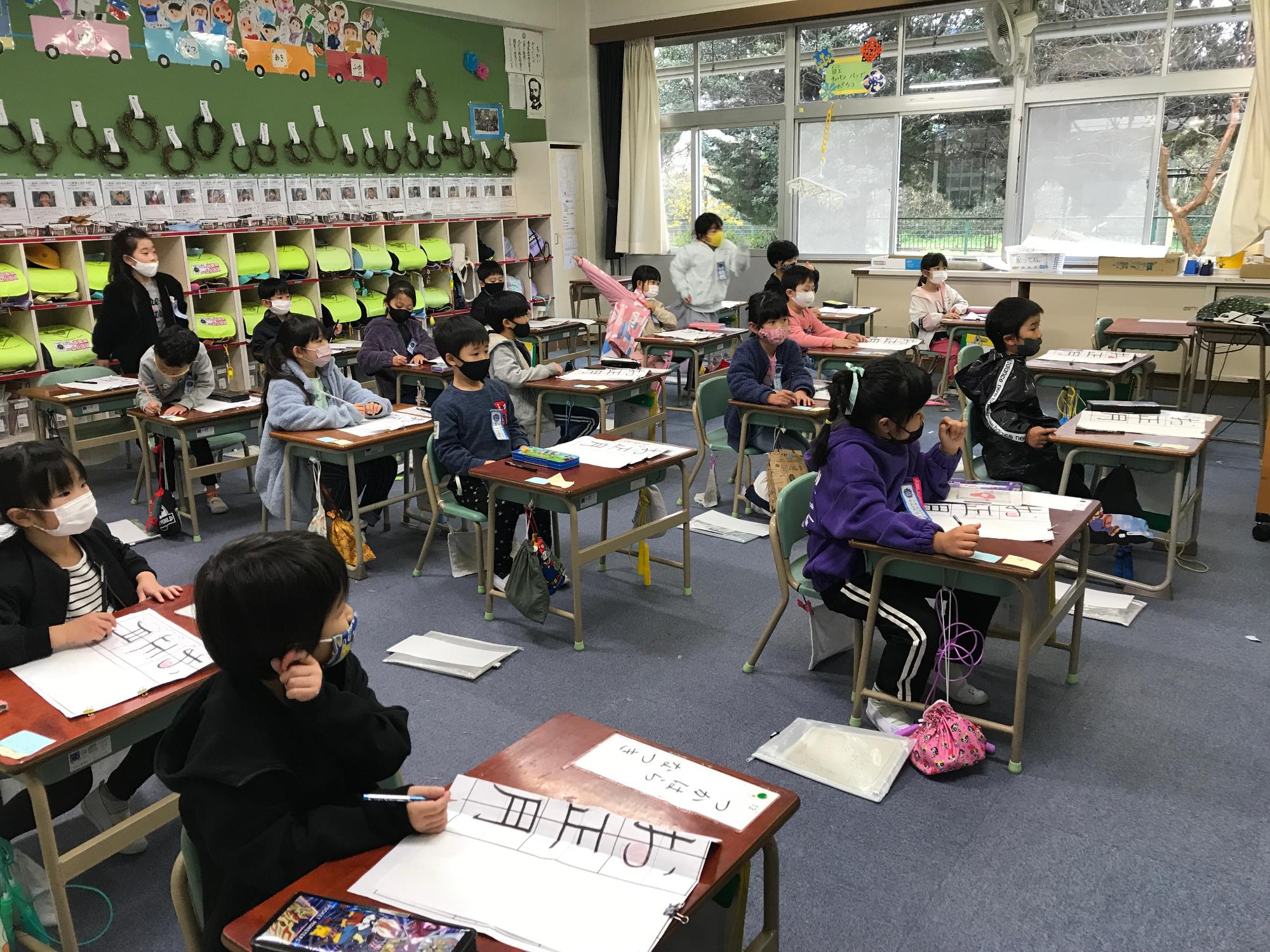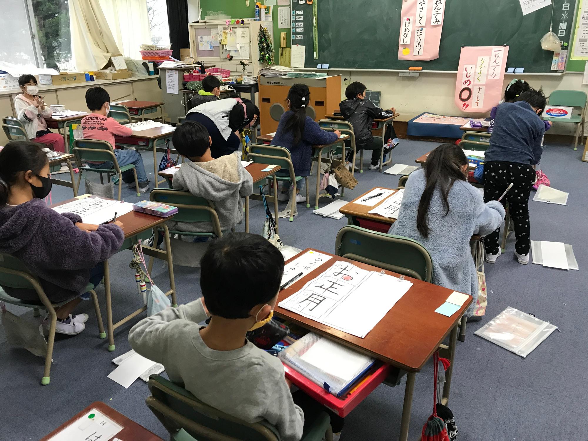 今日は、校内書きぞめ展に出品する作品を、校内一斉に制作する競書会でした。「よい作品を作りたい」と意気込みを述べてくれた人もいます。書写ですので、お手本に近いものが「よい作品」です。お手本をよく見て丁寧に書きましょう。