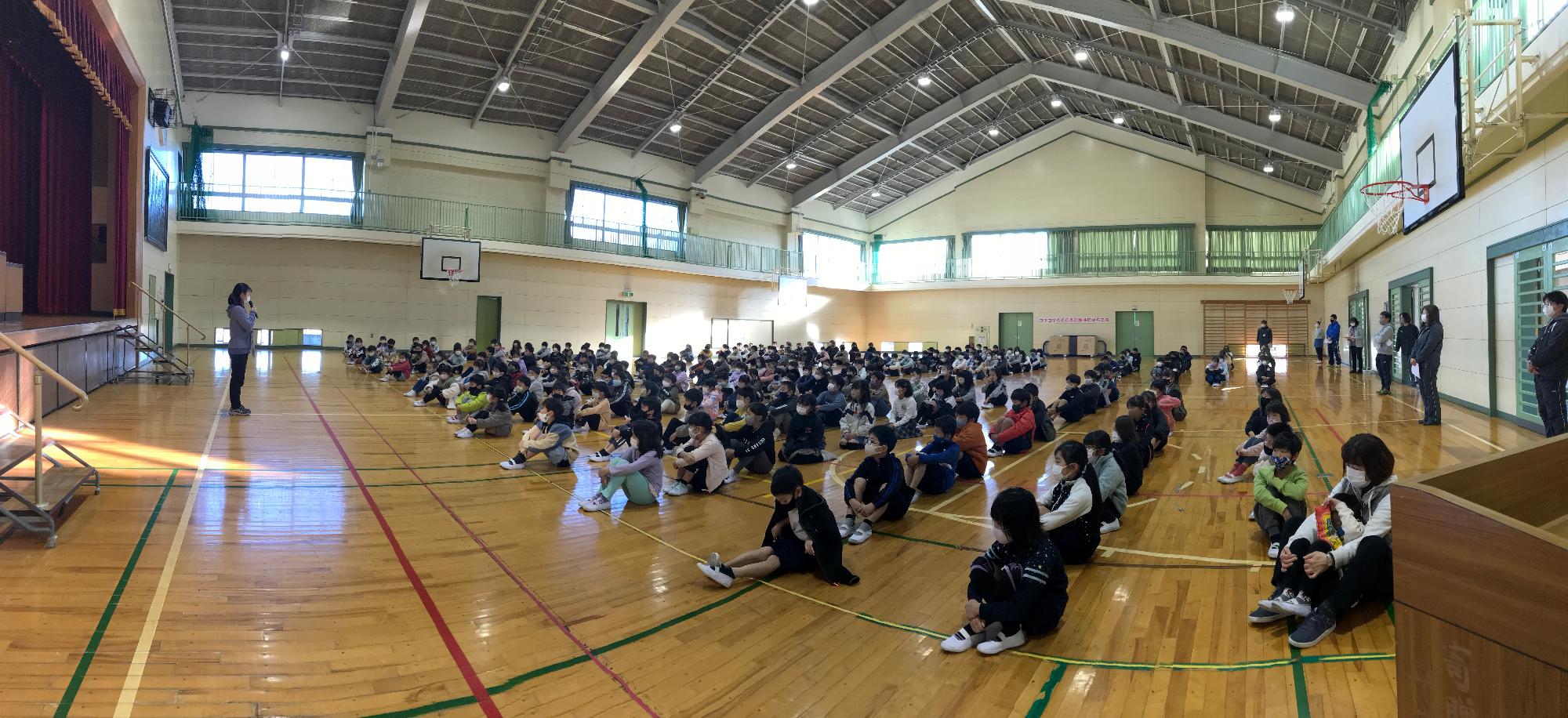 コロナ禍で全校が一つ集まることは、ずっとなかったことです。今回は、表彰ということもあって、みんなの前で行いたいと、コロナの谷間ということもあって、賞状朝会を行いました。