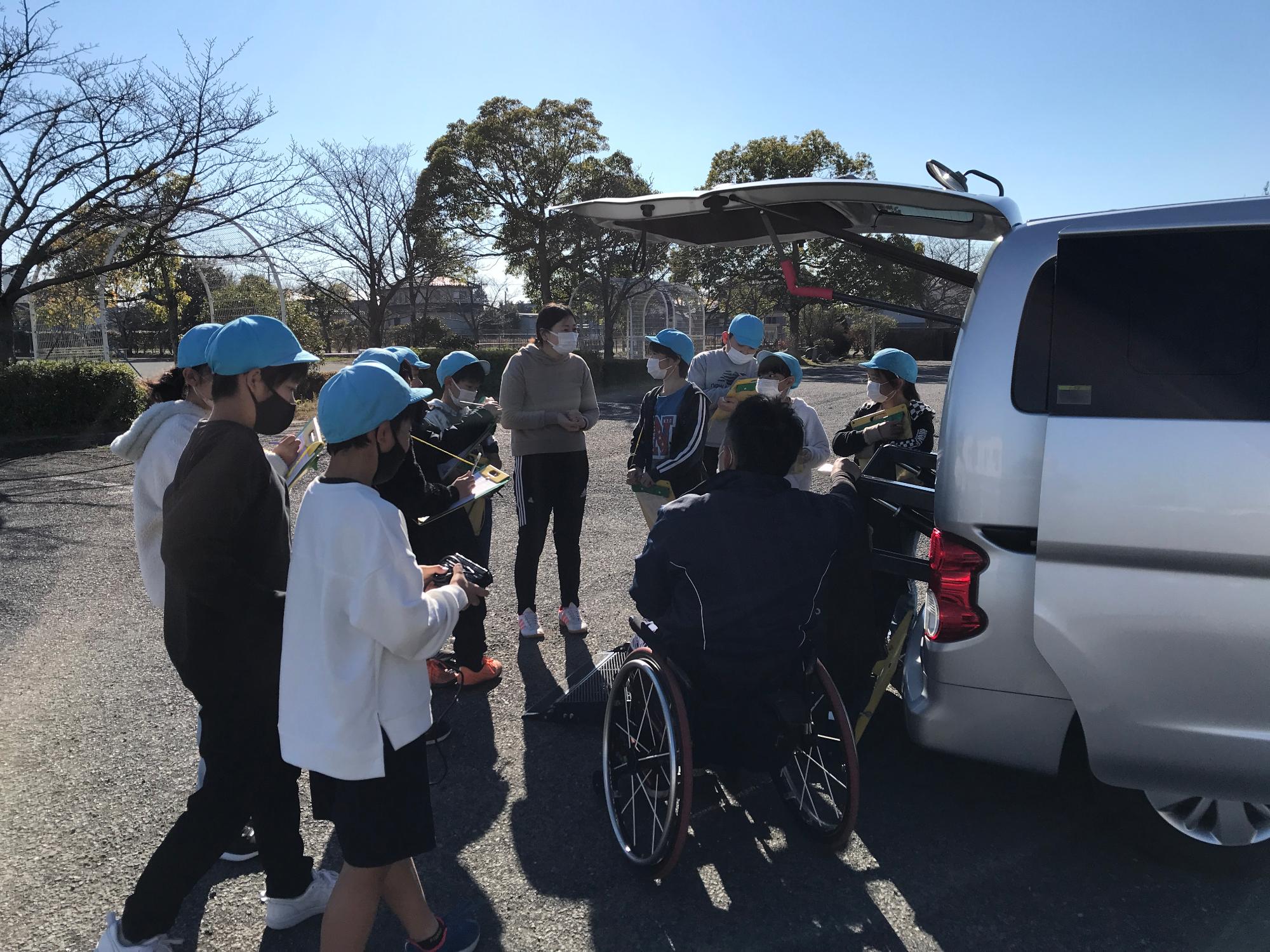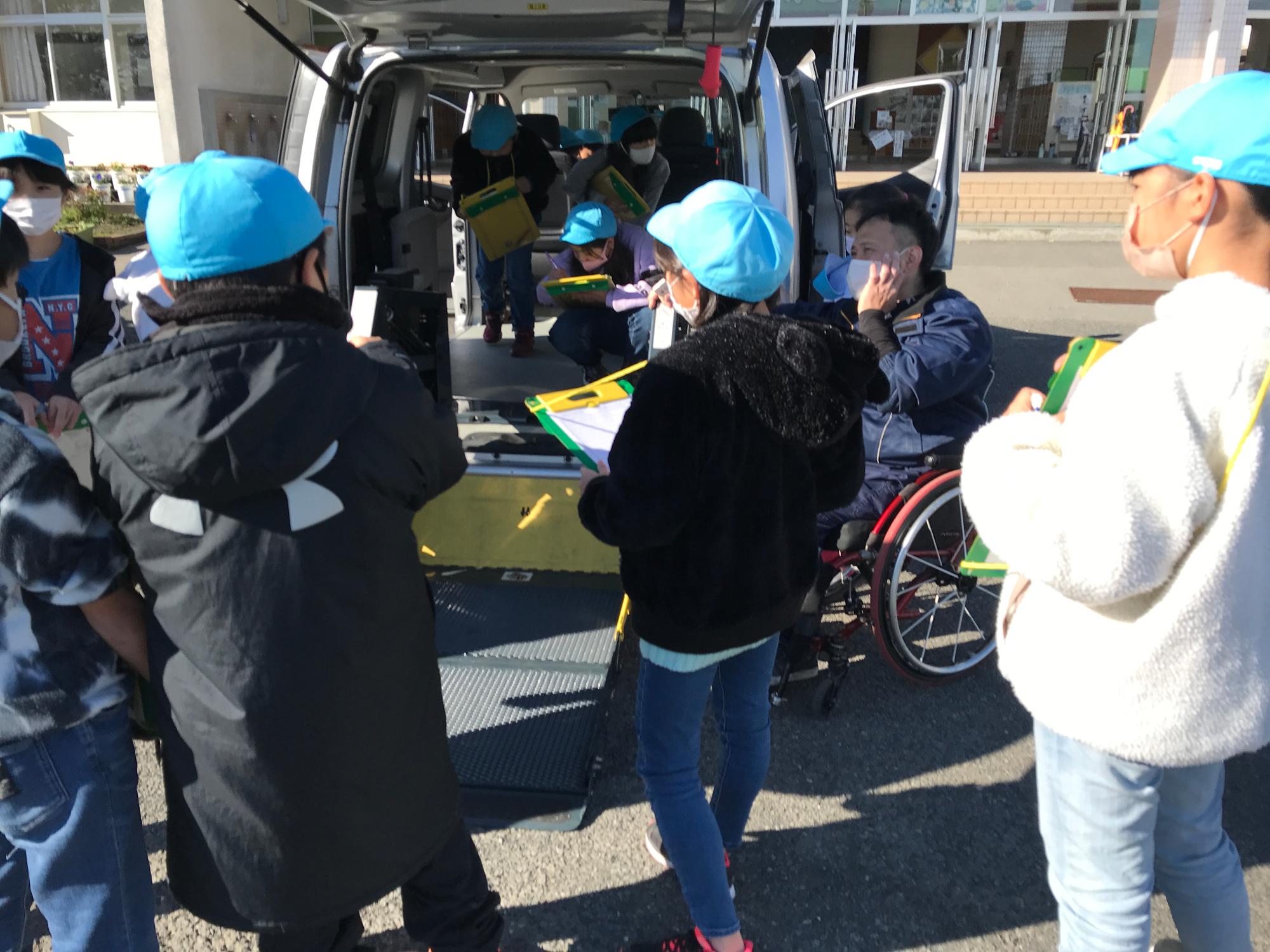 車椅子体験、点字体験に続いて、障害のある方が自由に外出できるように作られた自動車を見せていただきました。技術開発により、様々な工夫と配慮がなされています。