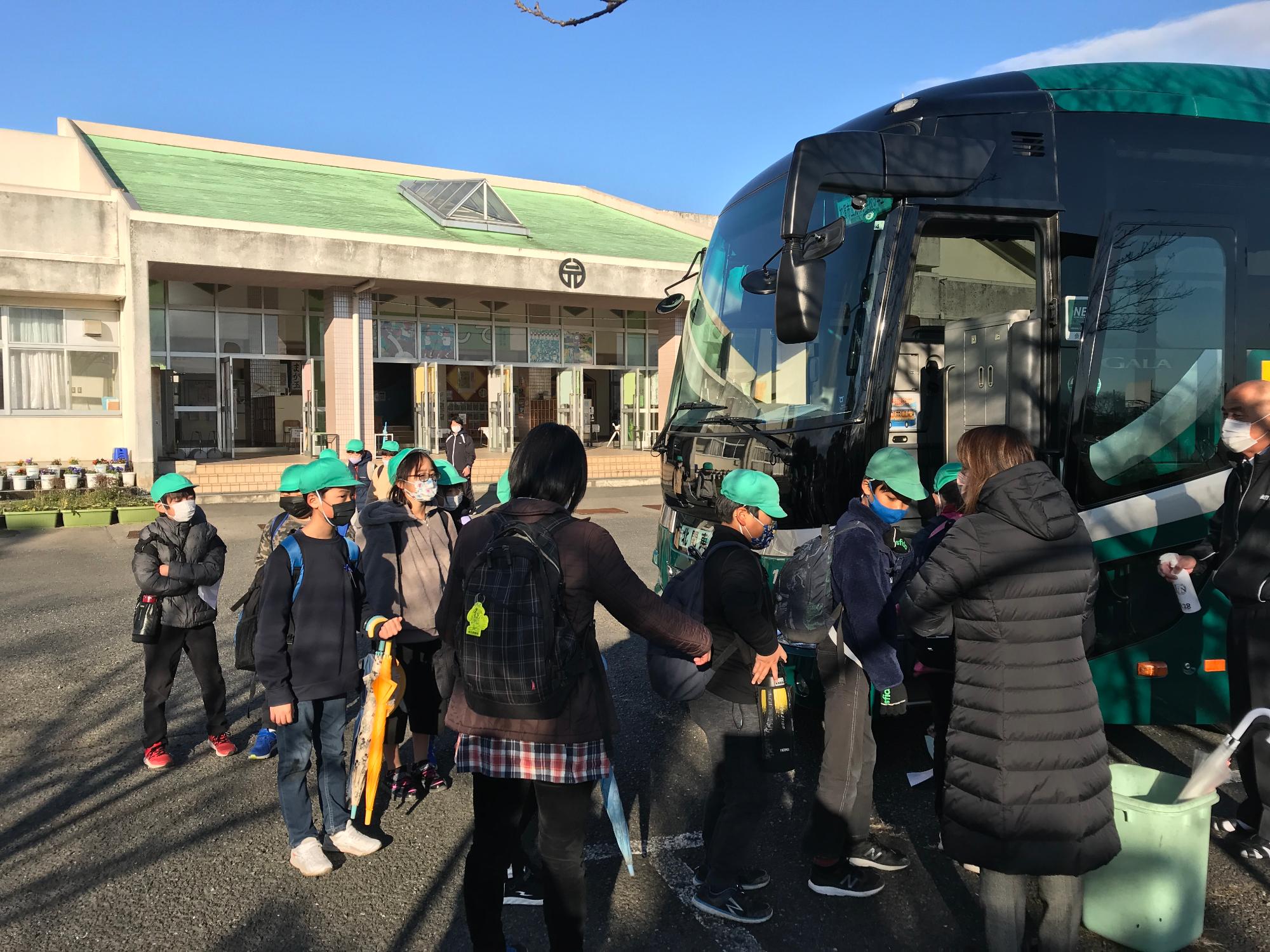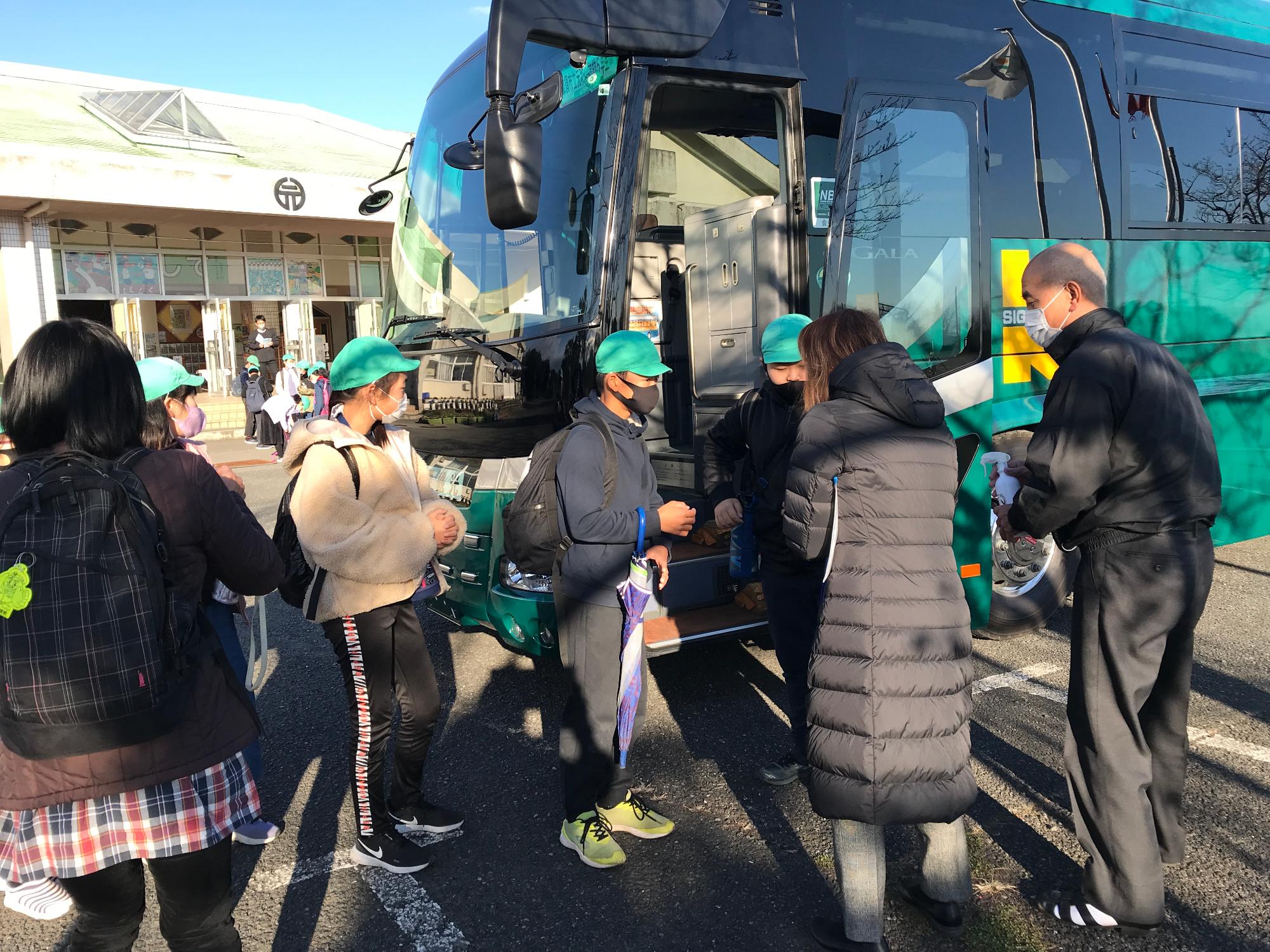 今日はバスに乗って、校外学習です。5年生の皆さんが元気に出かけました。学習内容は、食品工場見学と、科学館での科学体験、藍染め実習です。実体験が学習を豊かにし、広い見識となります。