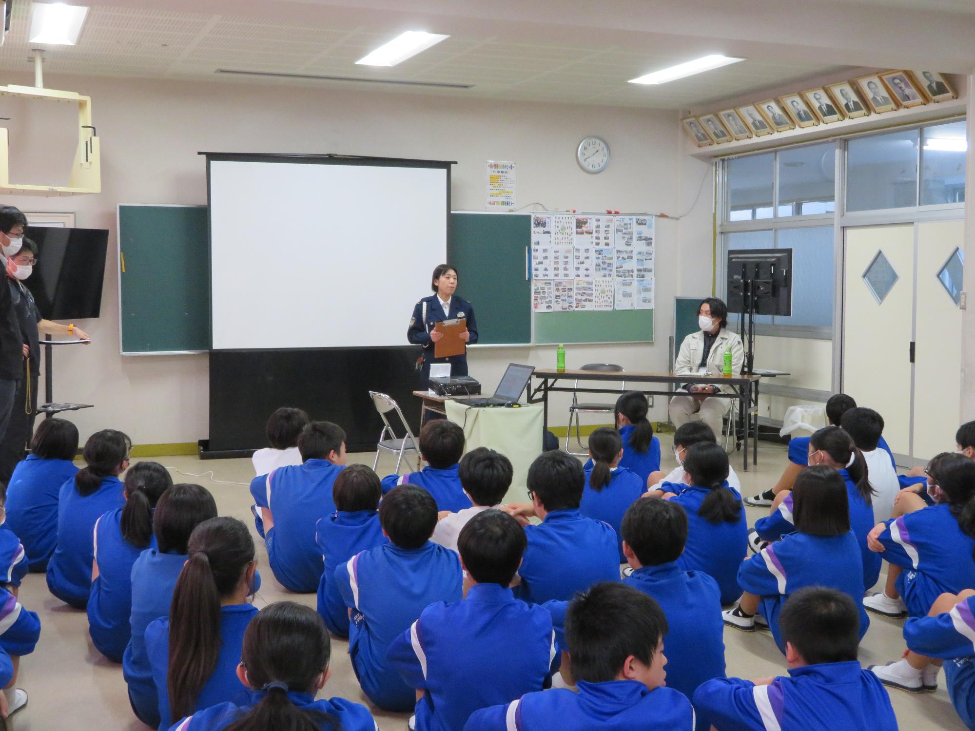 加須警察の方が来校し、1学年の生徒を対象に交通安全講習会を行いました。