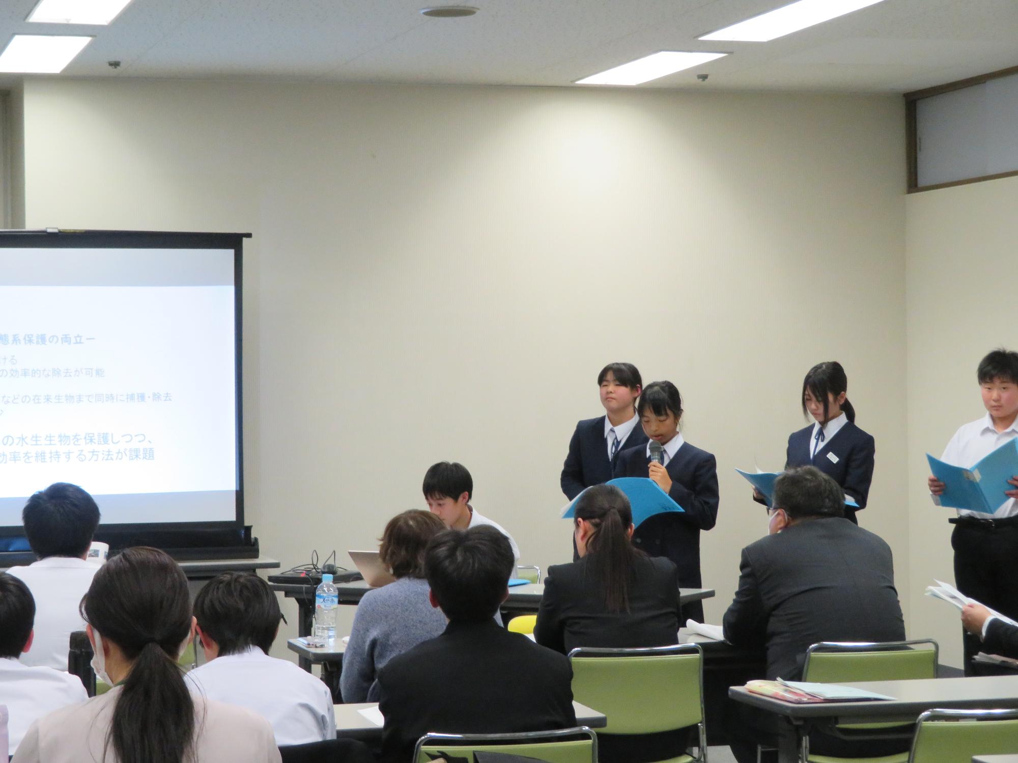 最初は、中学1年生が6年生に、中学校生活の様子について説明しました。
