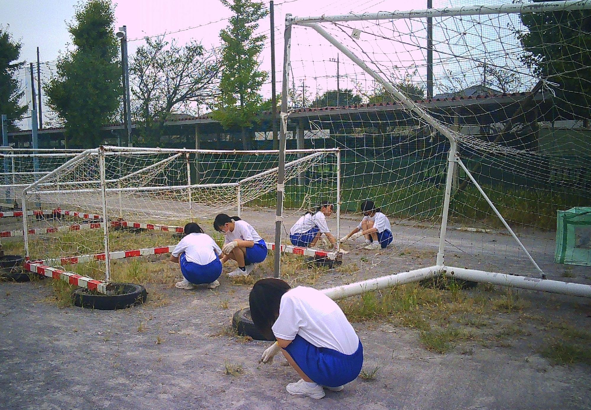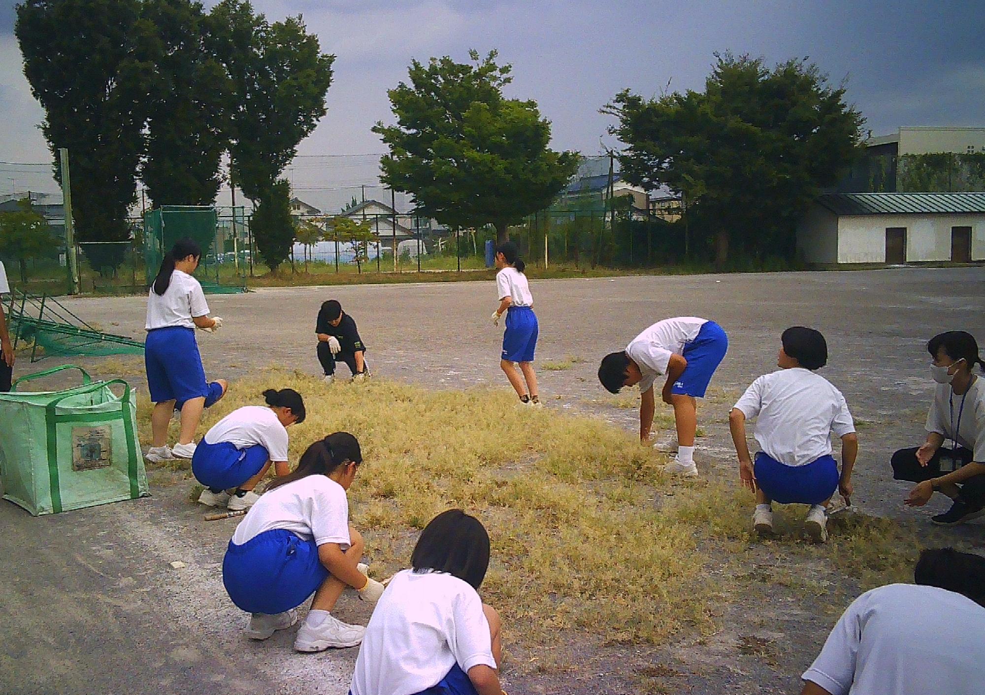 生徒会がボランティアを募り、校庭の美化活動(除草作業)を行いました。生徒会役員を含め、24名の生徒が参加し、校庭をきれいにしてくれました。