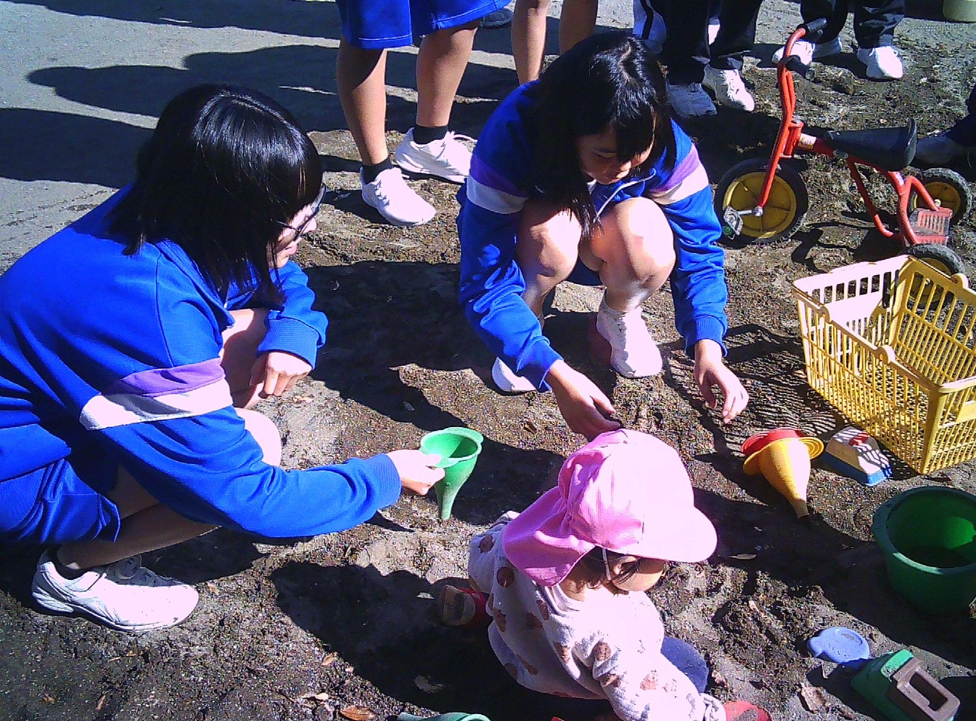 地元の保育所や幼稚園の協力を得て、保育実習を行いました。生徒たちは自作の絵本を使った読み聞かせや、園児との鬼ごっこ、砂遊びなどを通して交流しました。幼児と接する中で、思いやりや責任感を学ぶ貴重な経験となりました。