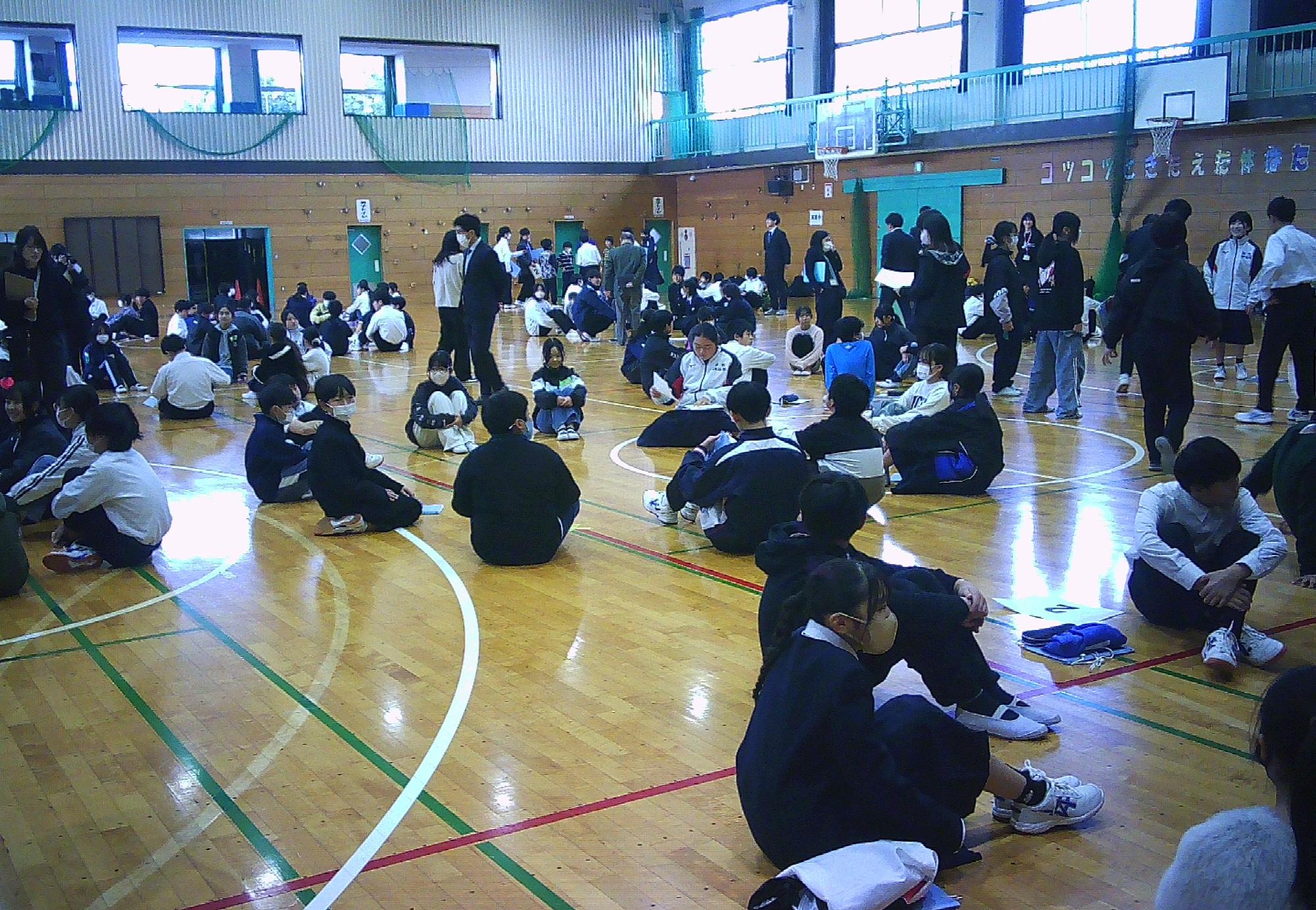その後、5校の6年生同士で、いすとりゲームやハンカチ落としなどをして交流を深めました。