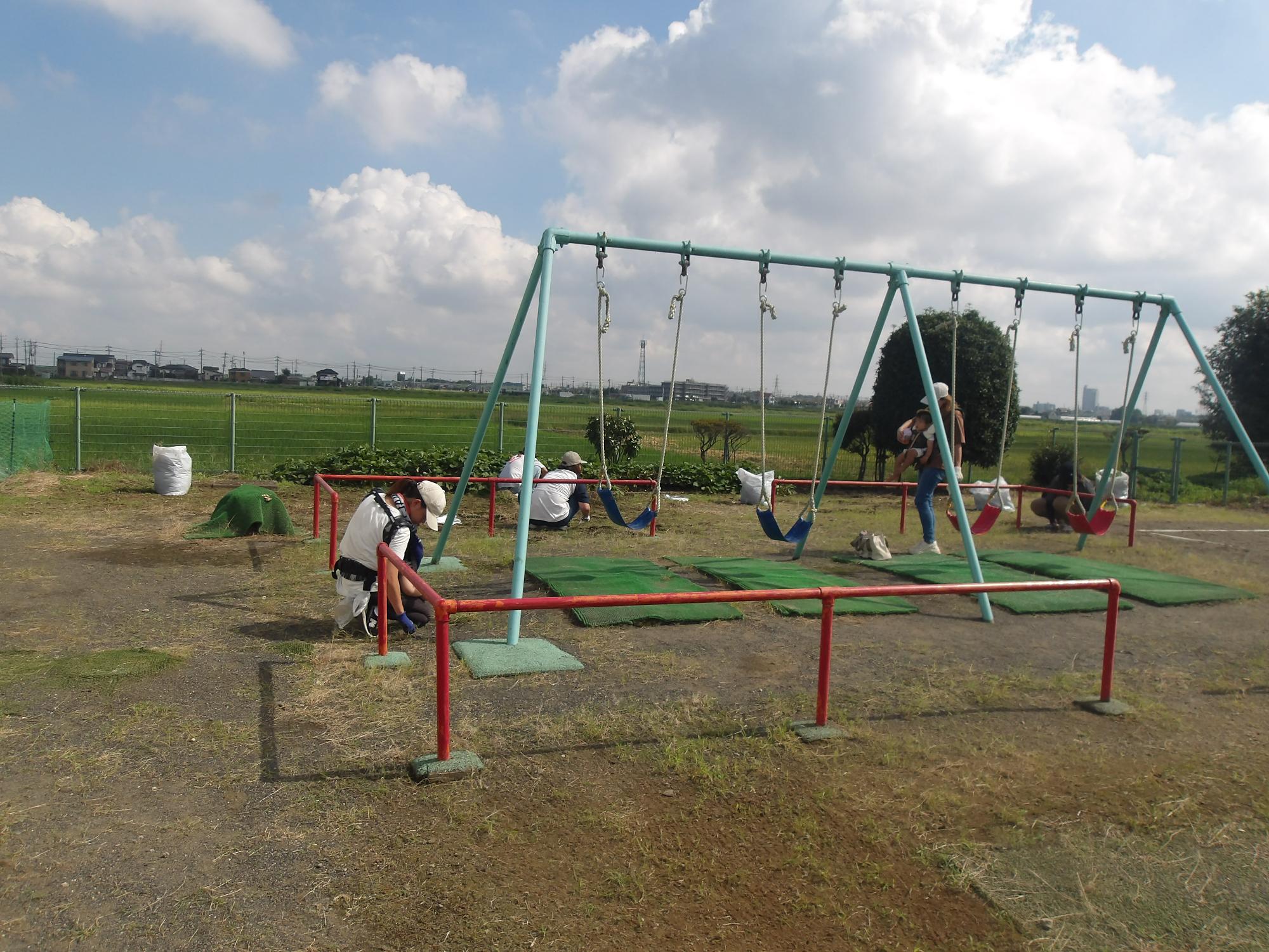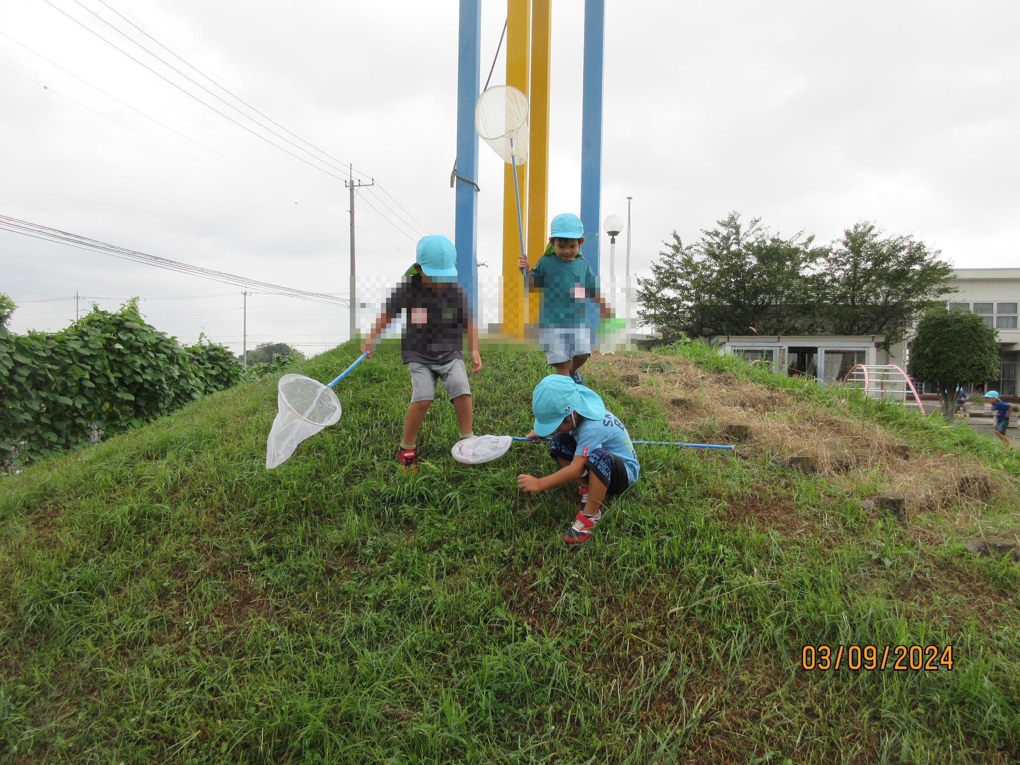 山の周りでは、トンボやバッタ、カエルがたくさんいました。夢中になって虫取りを楽しんでいます。