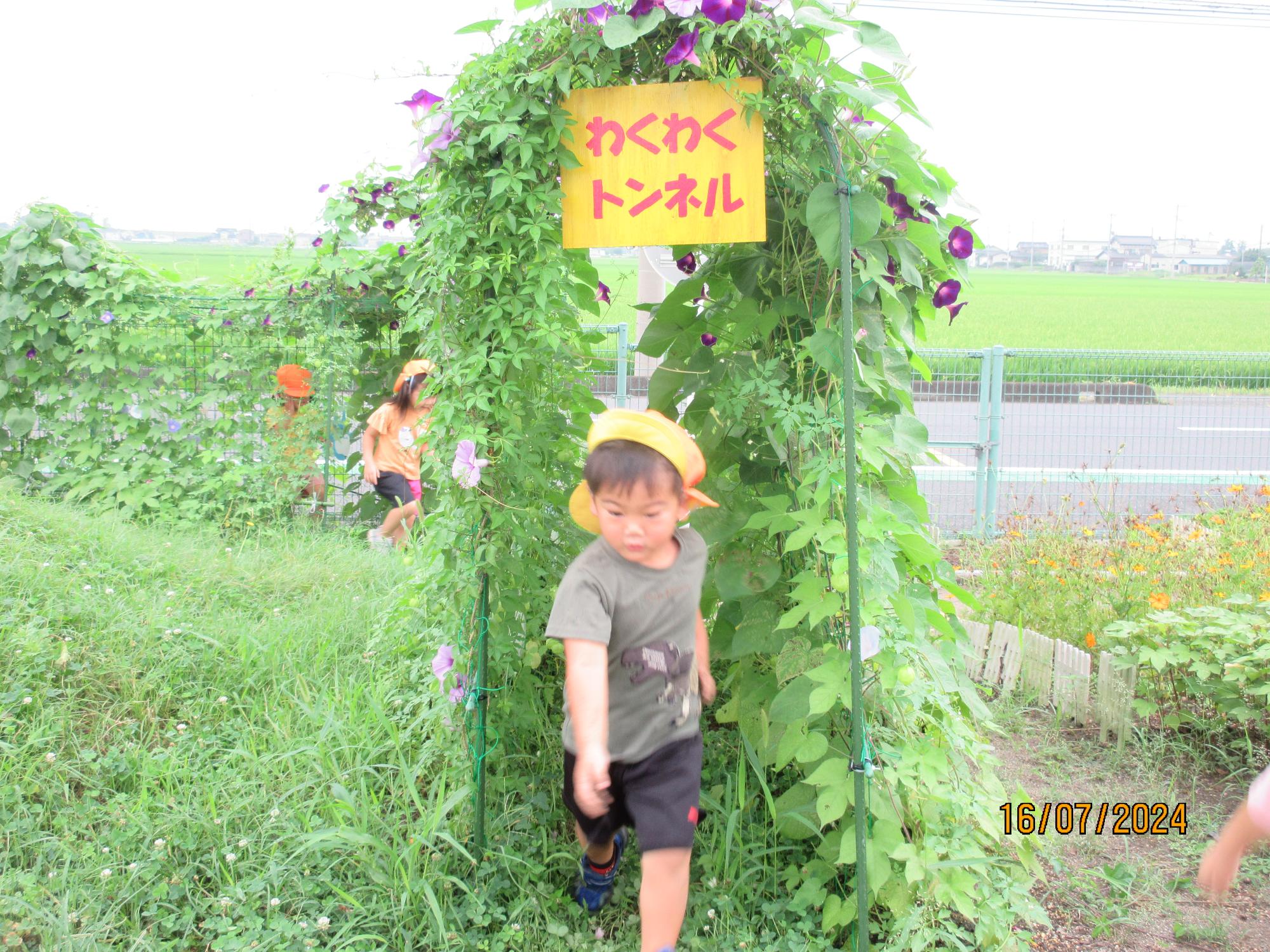 夏休み前は、アサガオの花がちらほら咲く程度のトンネルでしたが…