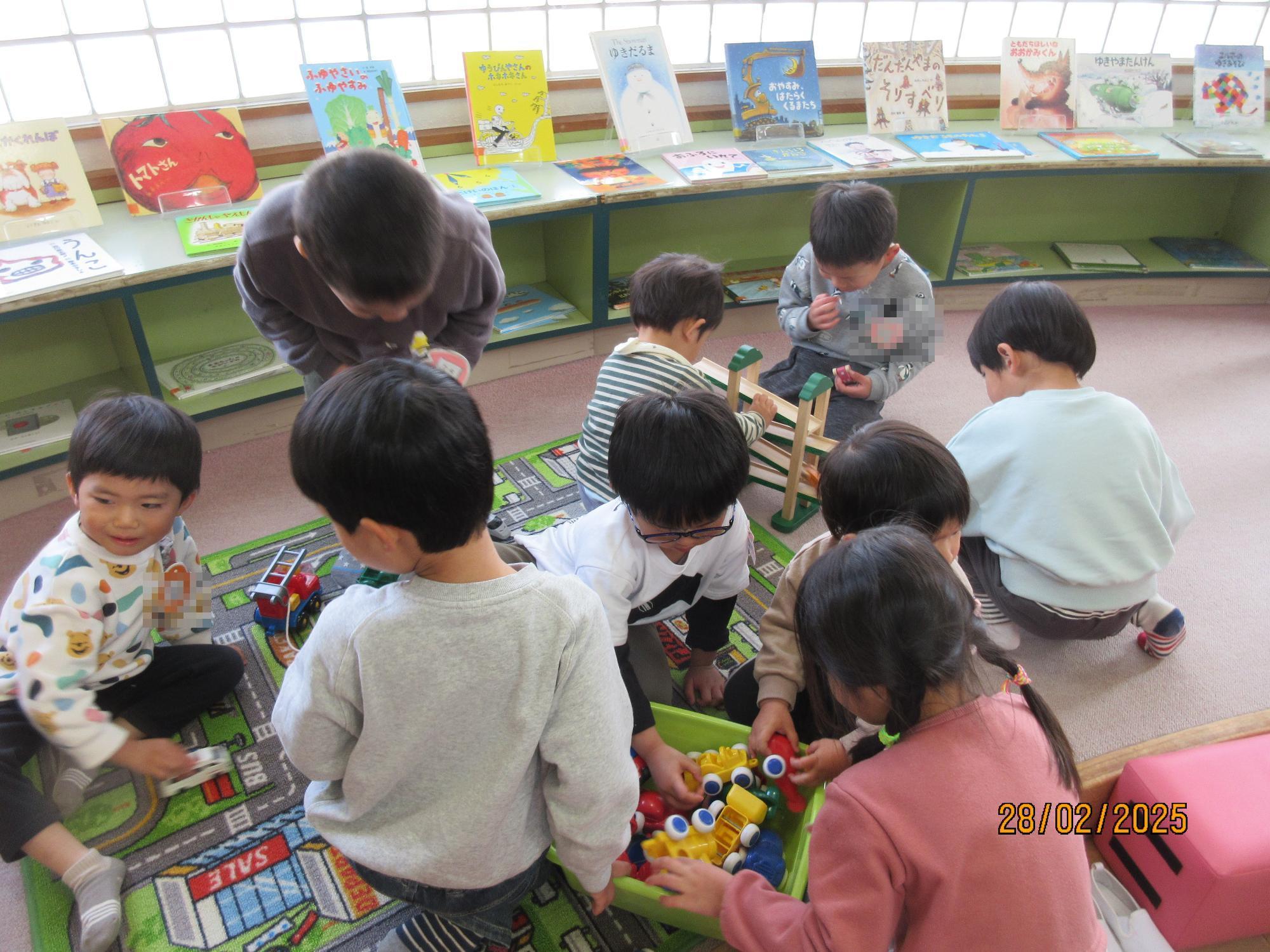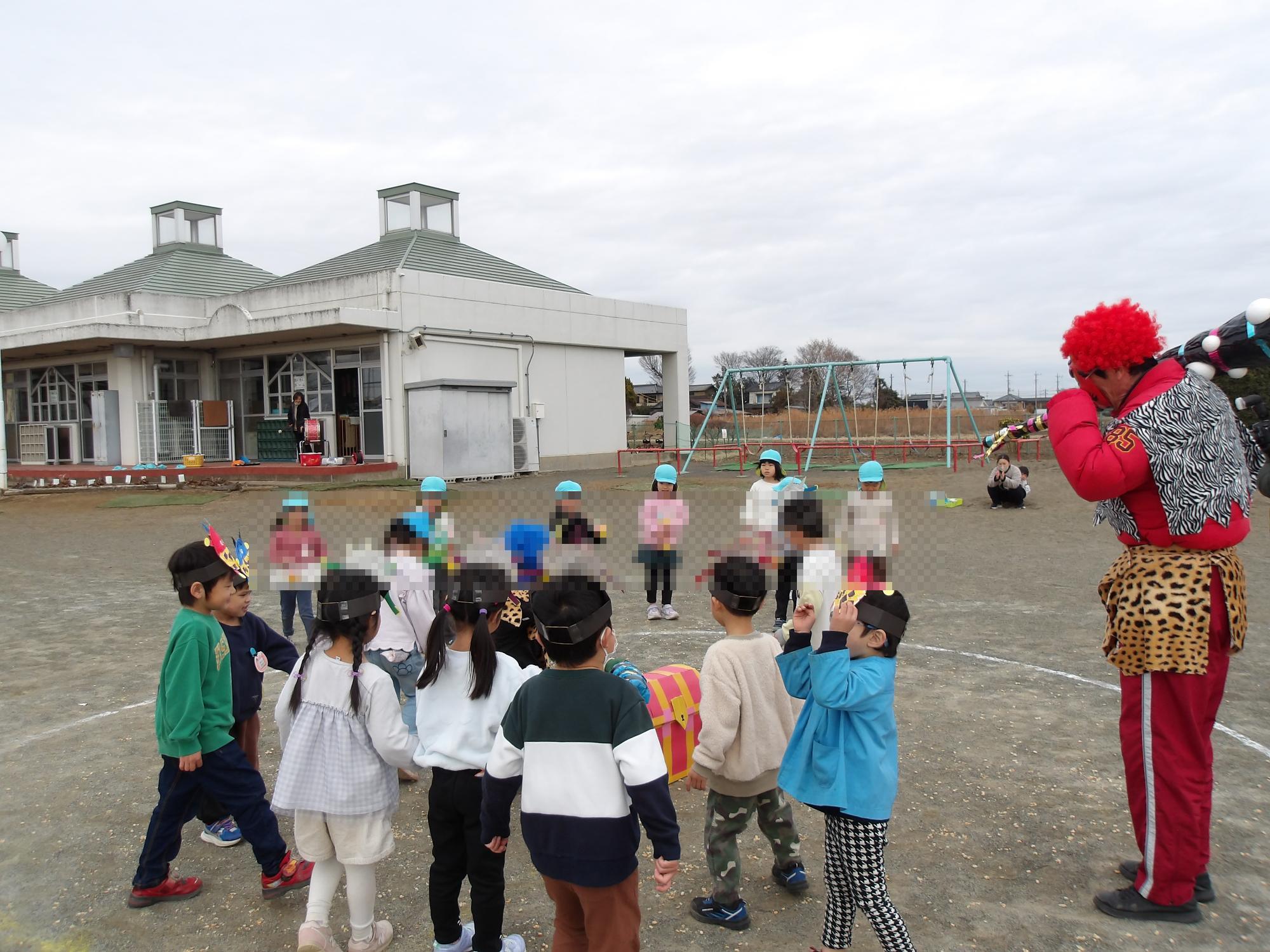 2月28日(金曜日) トマトキッズやレインボーの小さい友達に劇を見せたり、一緒に遊んだりしました。