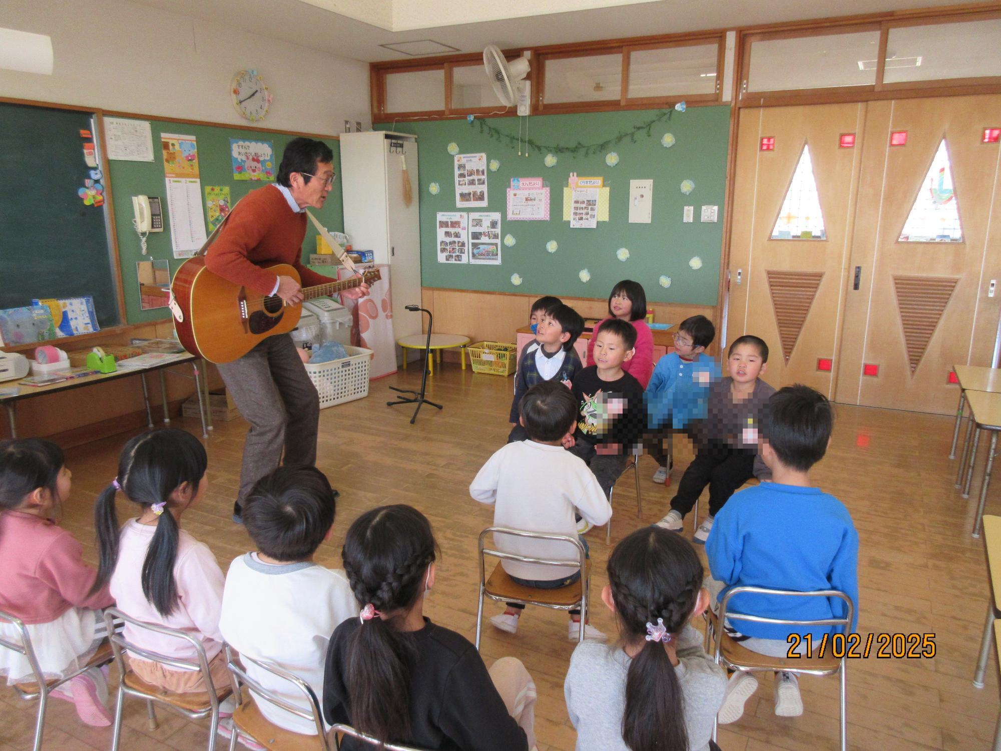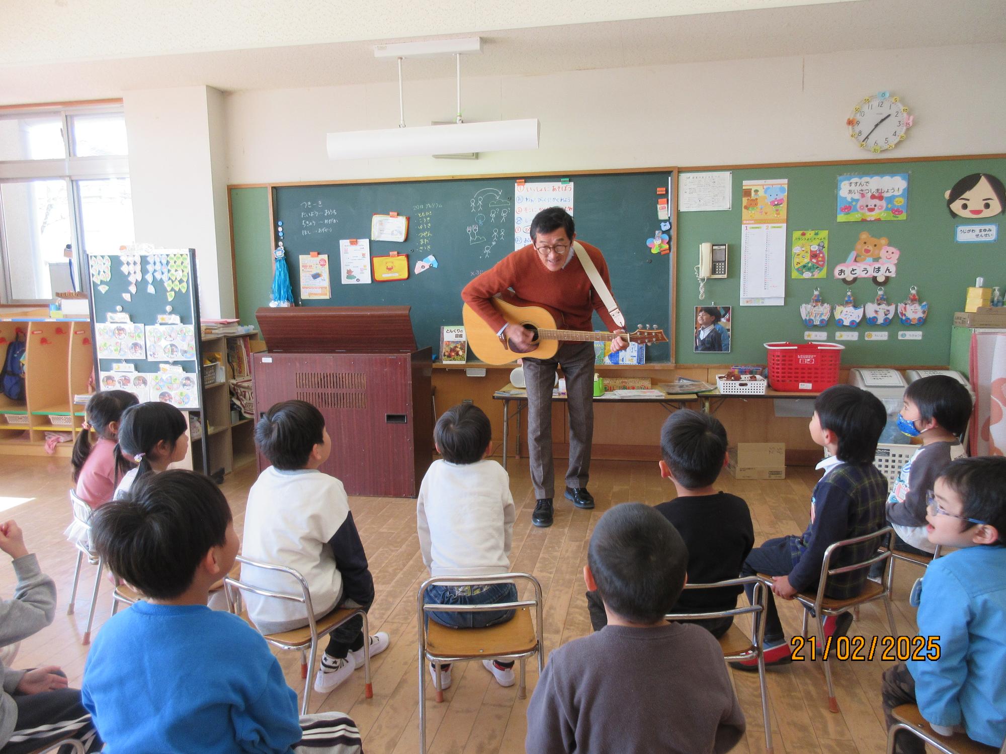 2月21日(金曜日) 園長先生がギターを弾き、みんなで歌いました。