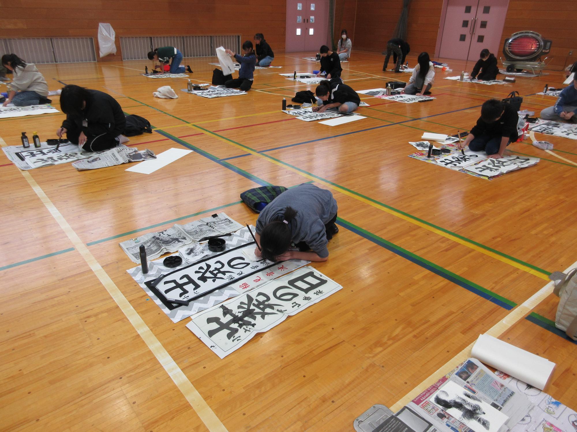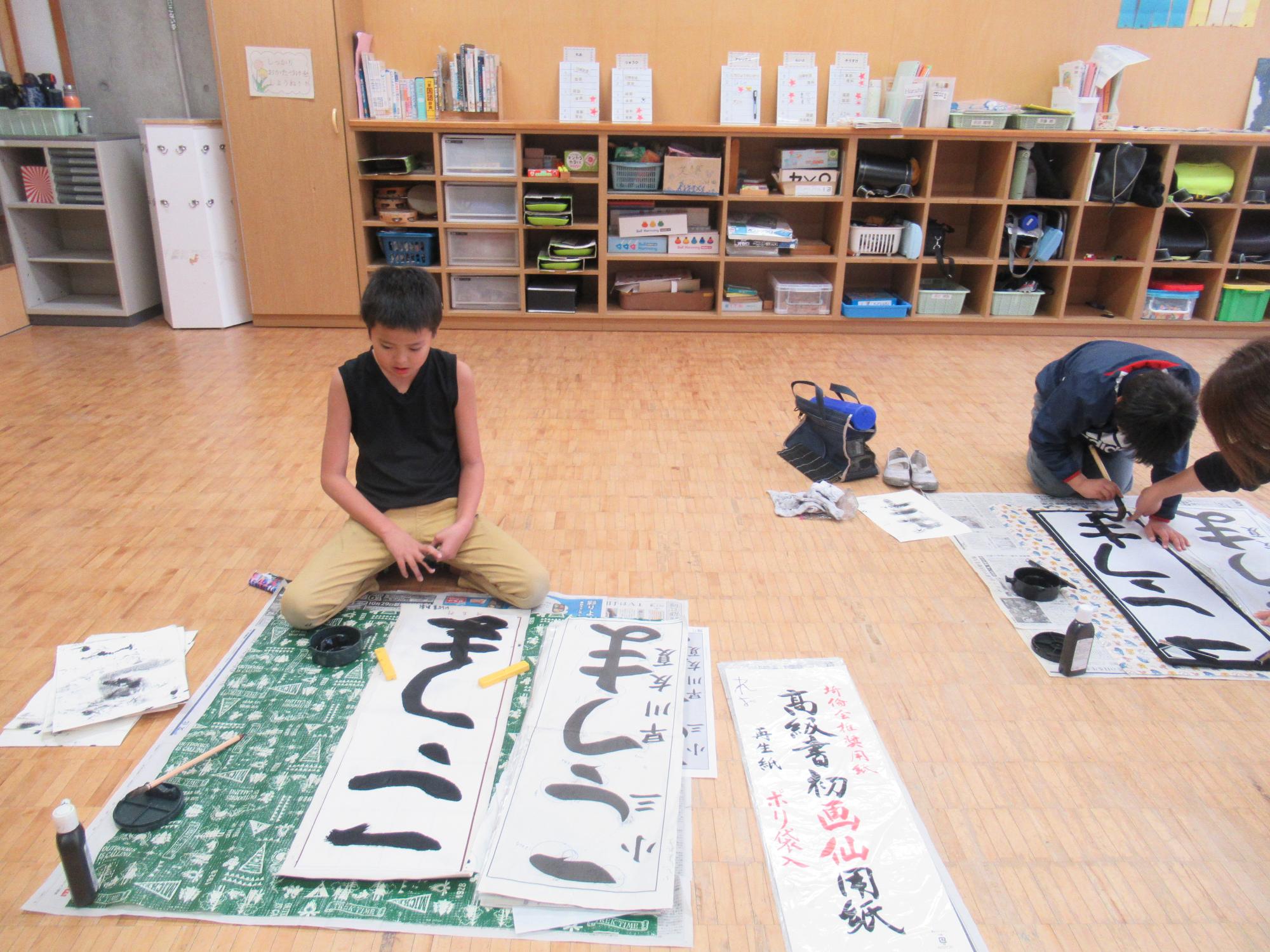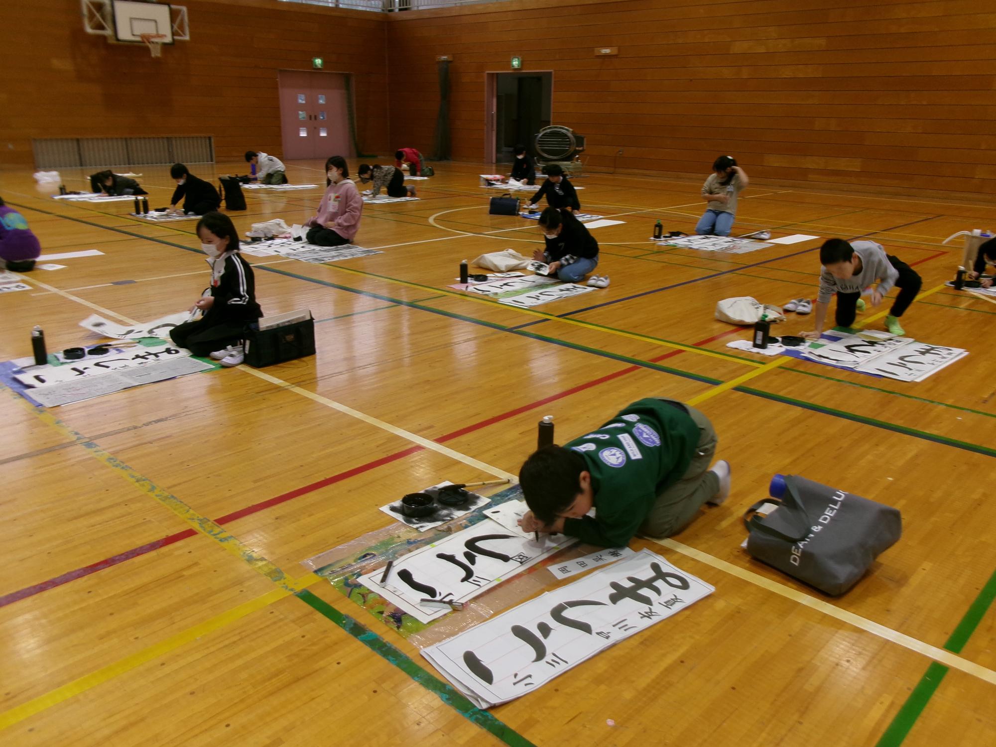 校内書きぞめ大会を行いました。子供たちはお手本をじっくりと見て、一文字一文字に心を込めて筆を運びました。会場は静かな緊張感に包まれ、一人一人が集中して丁寧に書き上げる姿が見られました。完成した作品には、それぞれの努力や思いが表れており、力強さや美しさが感じられました。