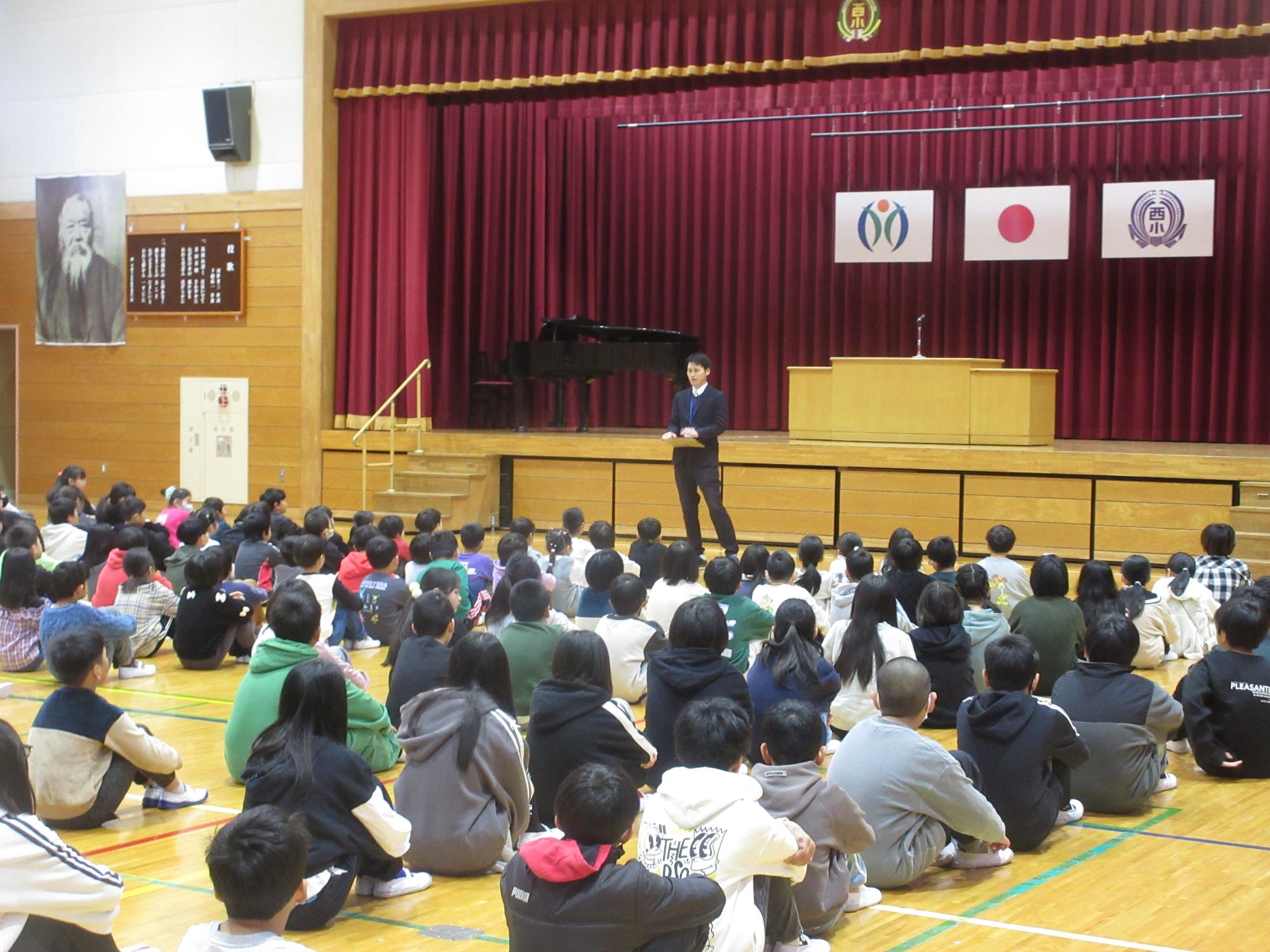 児童が芸術に親しむ機会として「芸術鑑賞会」を開催しました。 今回の演目は「あらしのよるに」で、劇団「俳優館」の皆さんによる迫力ある舞台が披露されました。物語の世界観が生き生きと表現され、子どもたちは真剣なまなざしで舞台に見入っていました。