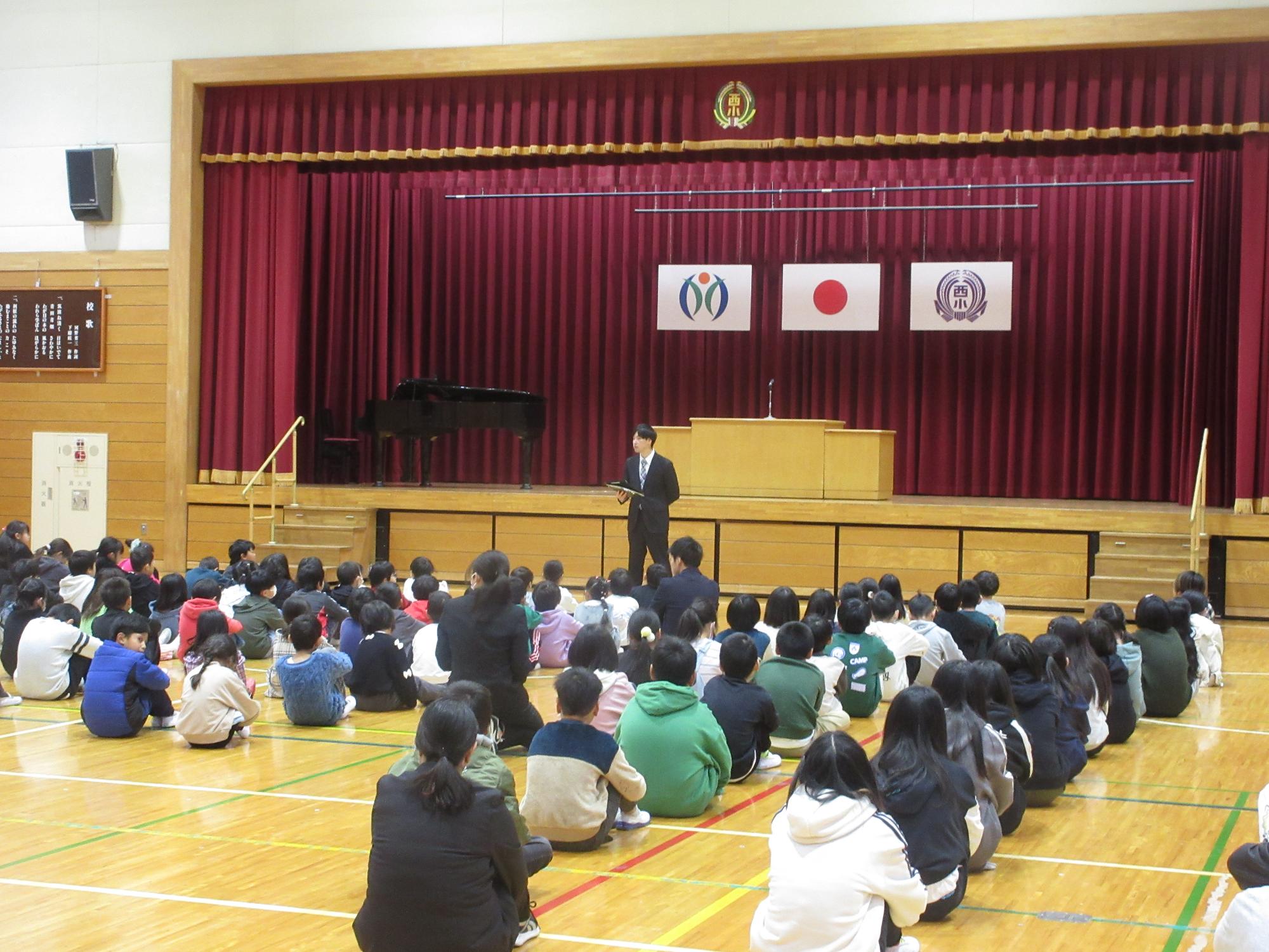 2学期の修了式を行いました。校長先生のお話では、2学期の出来事を振り返り、児童が挑戦してきたことを賞賛されていました。