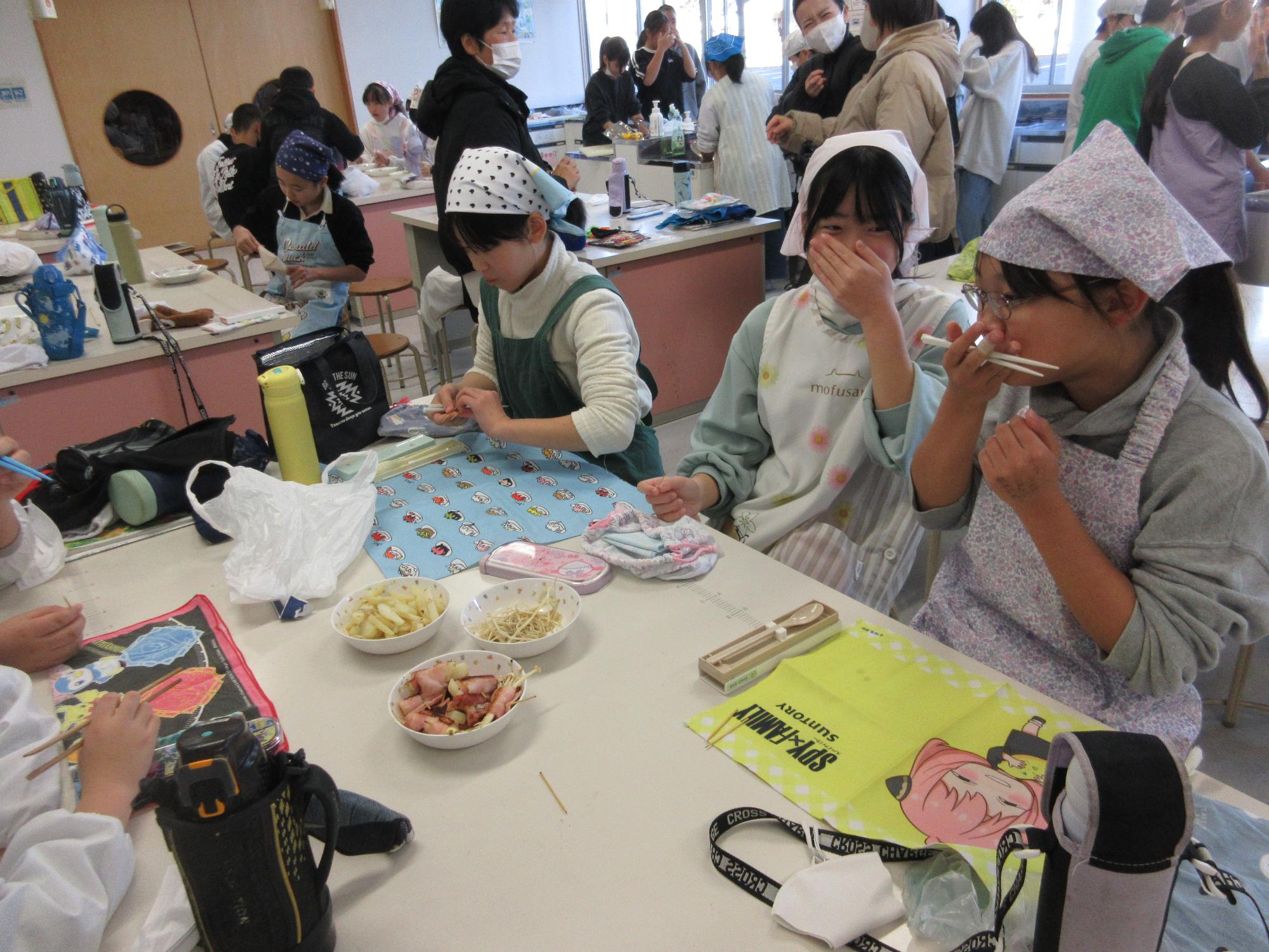 6年生が家庭科「1食分の献立を考えよう」の単元で調理実習を行いました。主食・主菜・副菜の組み合わせや栄養のバランスを考えながら献立を立て、友達と協力して調理に取り組みました。手順や安全にも気を配り、完成した料理を味わいながら、食の大切さについて学びました。