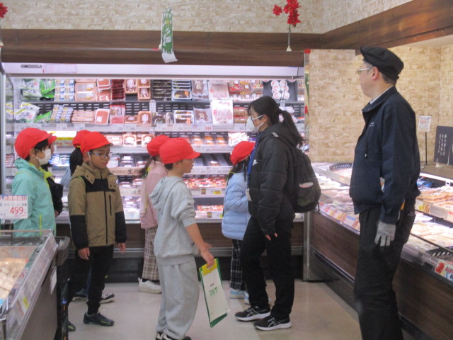 3年生は社会科の学習の一環として、地域のスーパー「マルヤ」を見学しました。 店内では、商品がどのように並べられているか、売り場ごとの工夫や働く人の様子などをじっくりと観察しました。子どもたちは、店員さんの説明を熱心に聞き、質問をしたりメモを取ったりしながら学びを深めました。