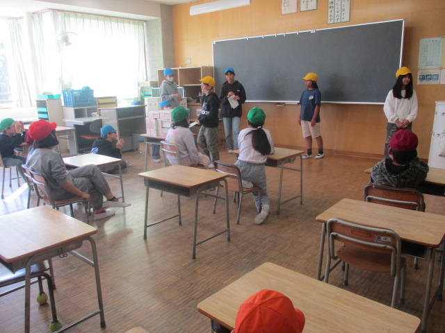 2学期最後のたてわり遊びをしました。ドッジボールやクイズ、椅子取りゲームなどをして遊びました。今回の遊びの内容は4年生が提案しました。みんなが仲良く過ごすことができました。