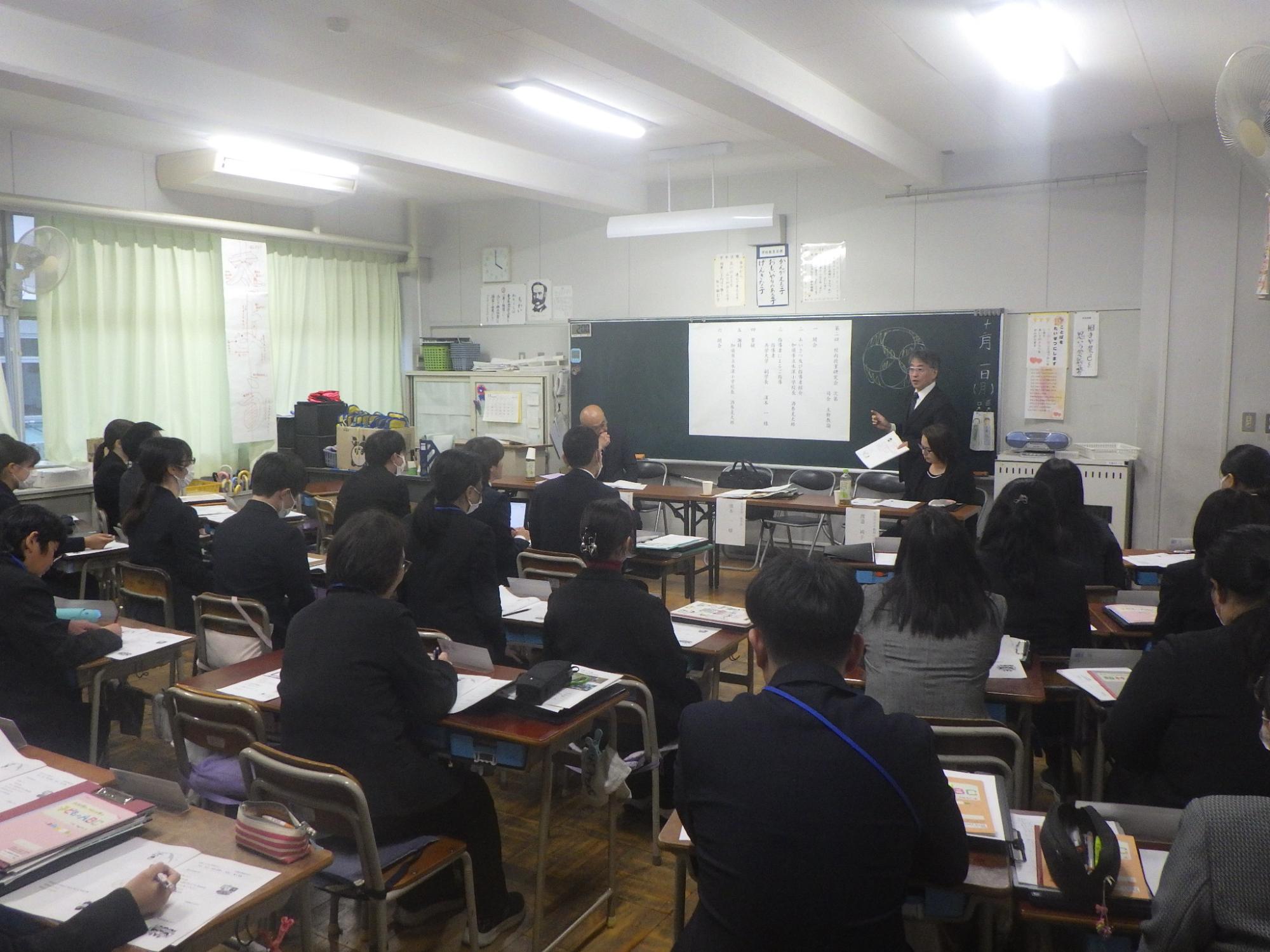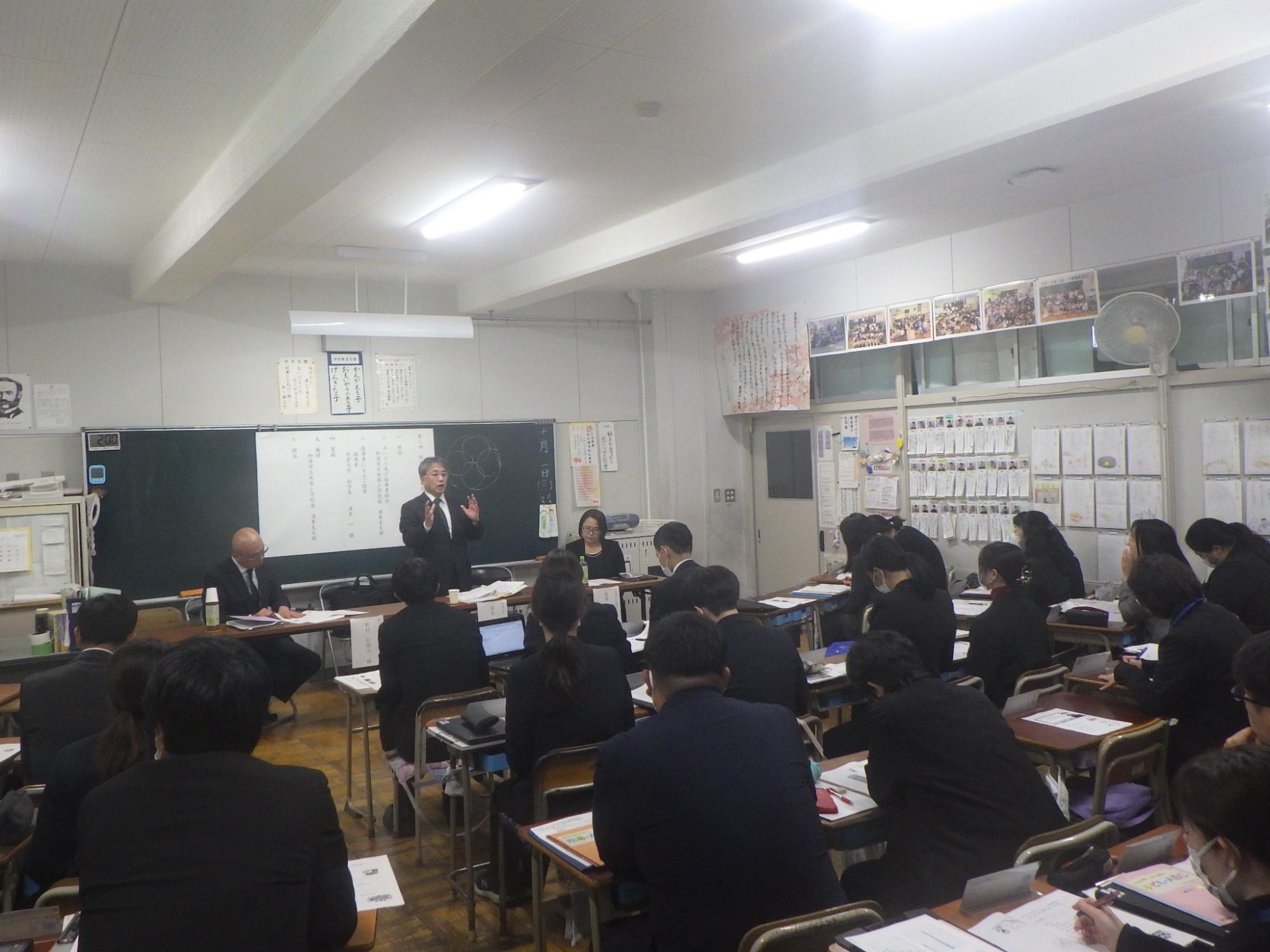 道徳、学級活動、音楽の研究授業の後、分科会を行い、学級経営及び授業改善に向けた協議等を行いました。その後の全体会では「ふるさとが響く教室づくり」と題した講話を聞き研修を深めました。