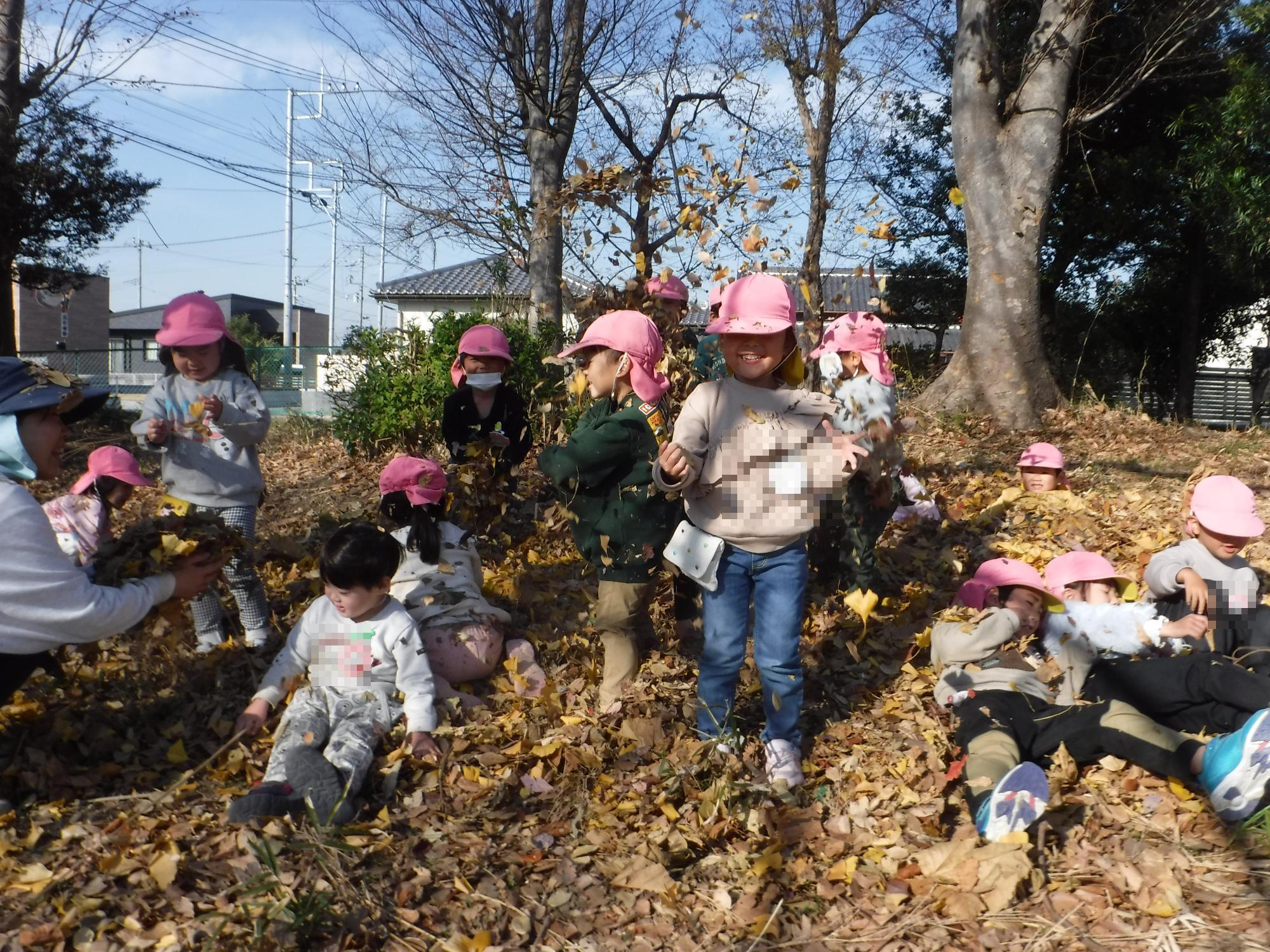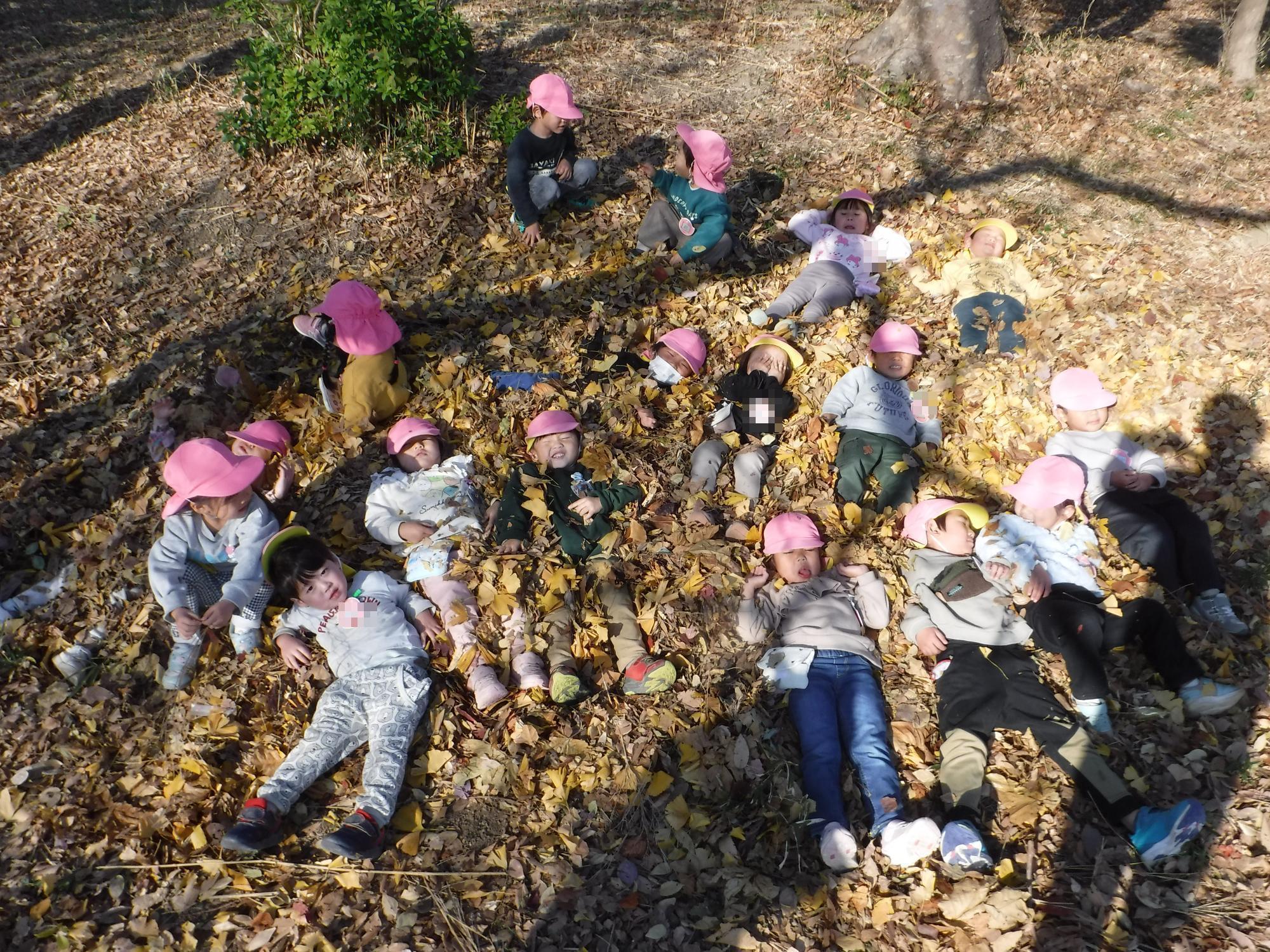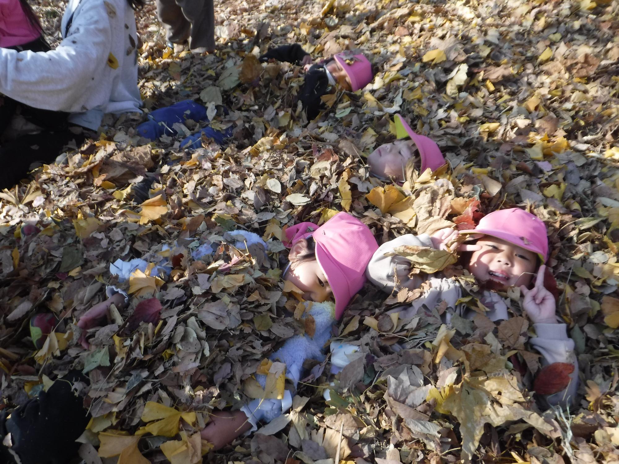 ぼうけんのもりの落ち葉遊び