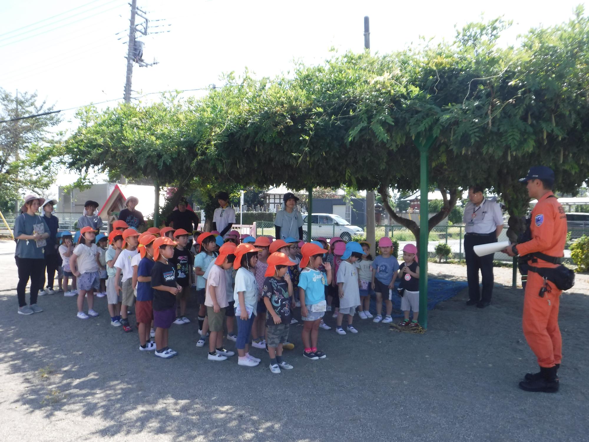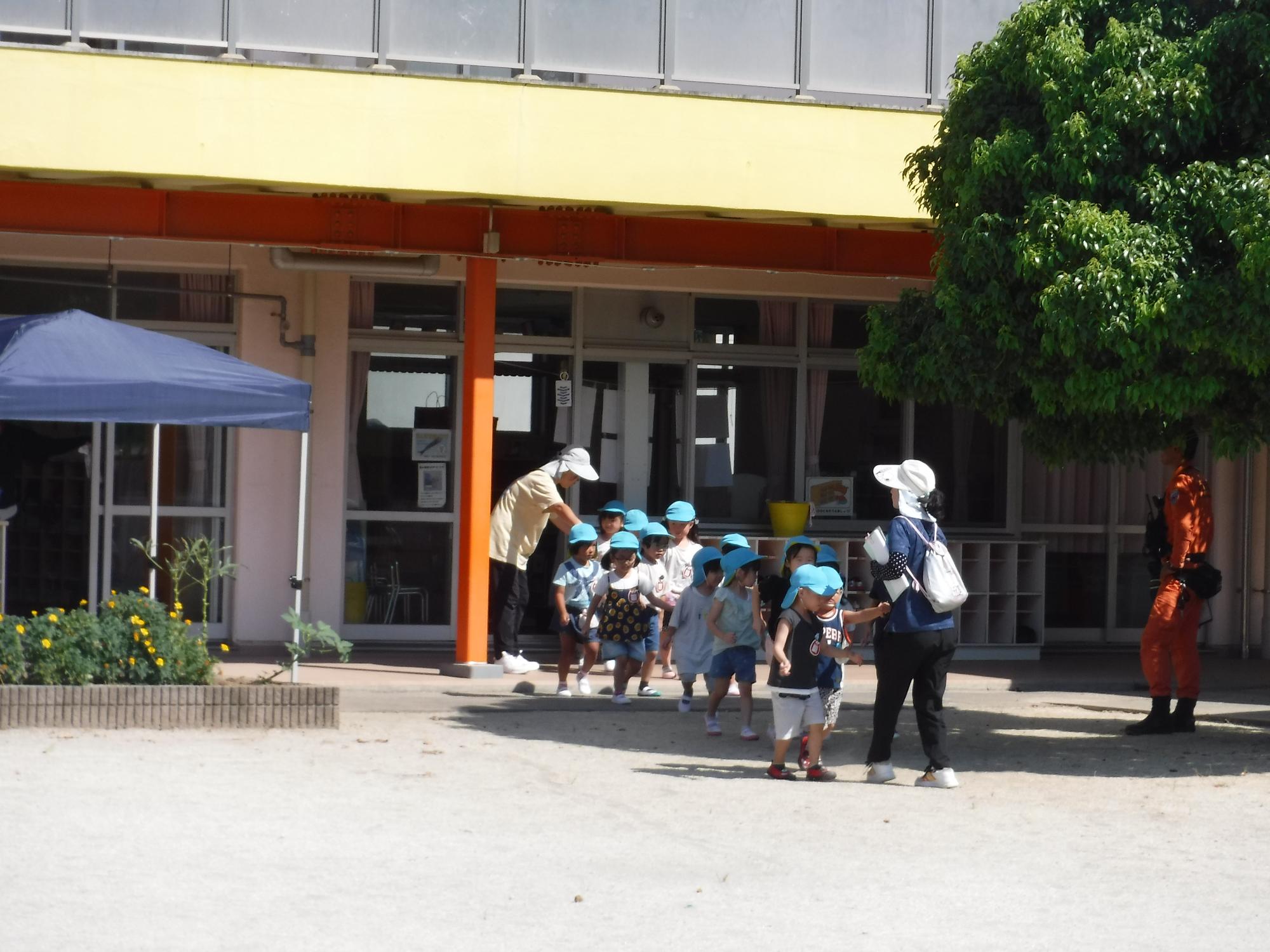 園長先生や消防士の方から上手に避難できたことをほめていただきました。