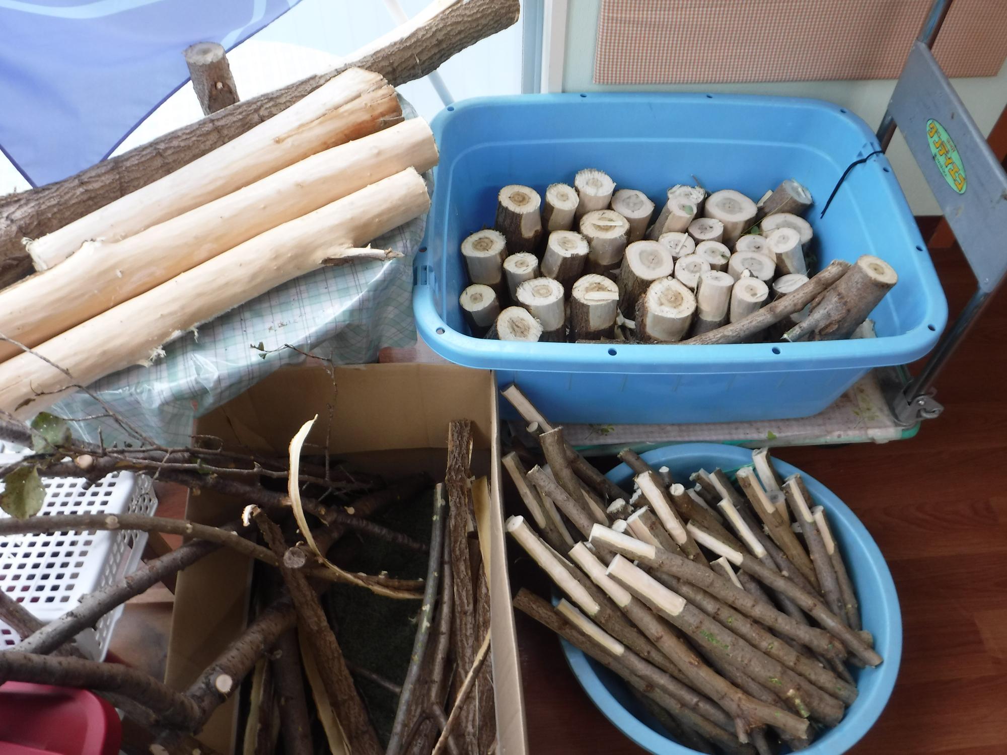 伐採した木や枝は、幼稚園では、宝物です。いったい何に変身するのでしょう?変身したものが、園庭に隠れています。探してみてください。