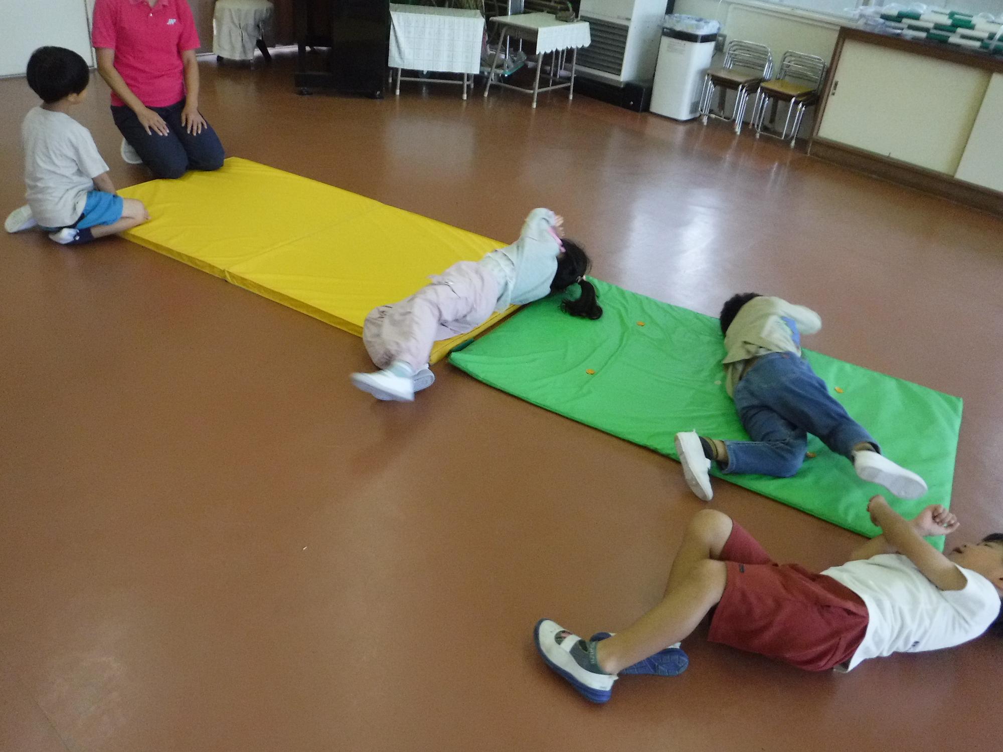 マットの上でゴロゴロ回転。