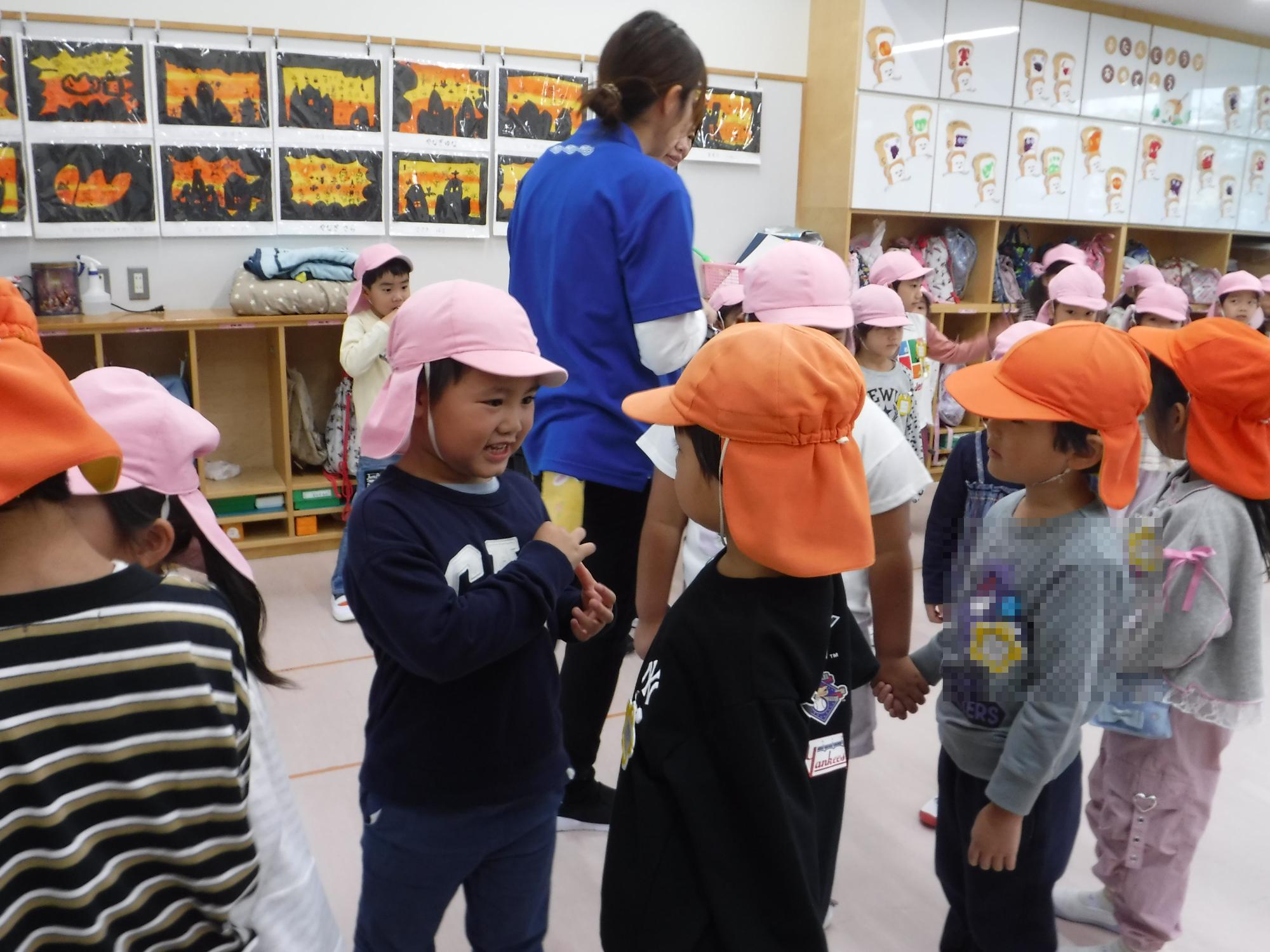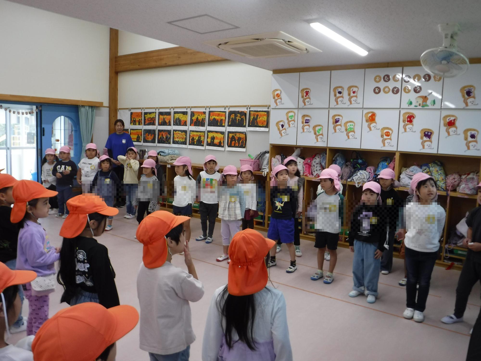 こすもす保育園へ着くと、年長きりん組のこども達が出迎えてくれました。