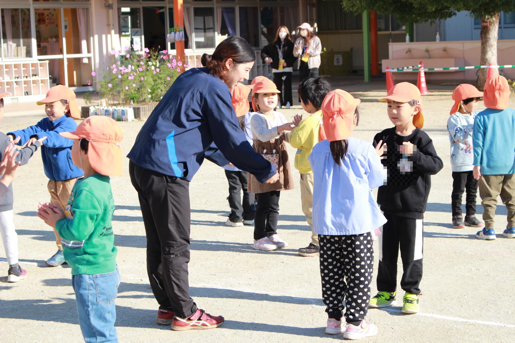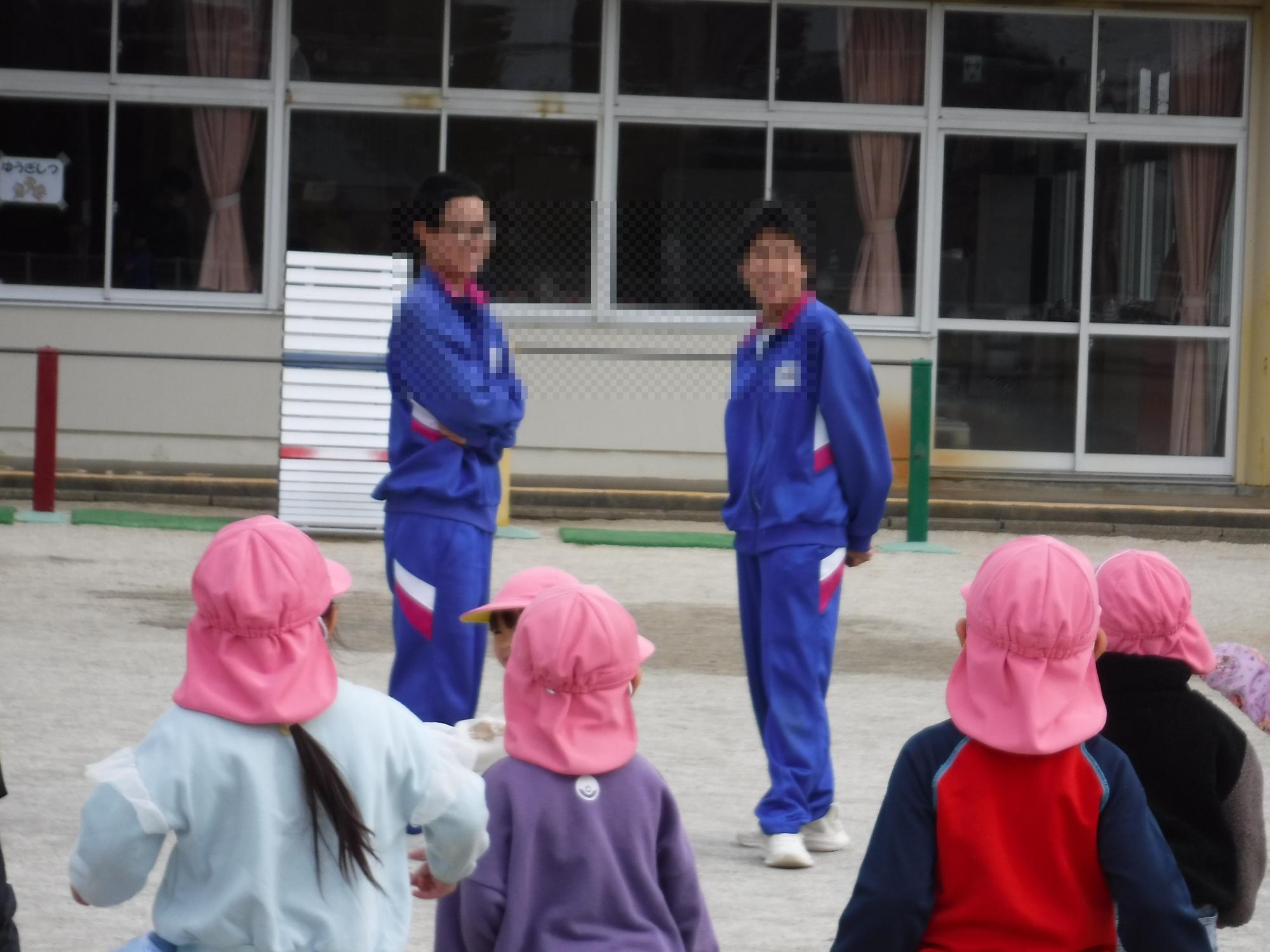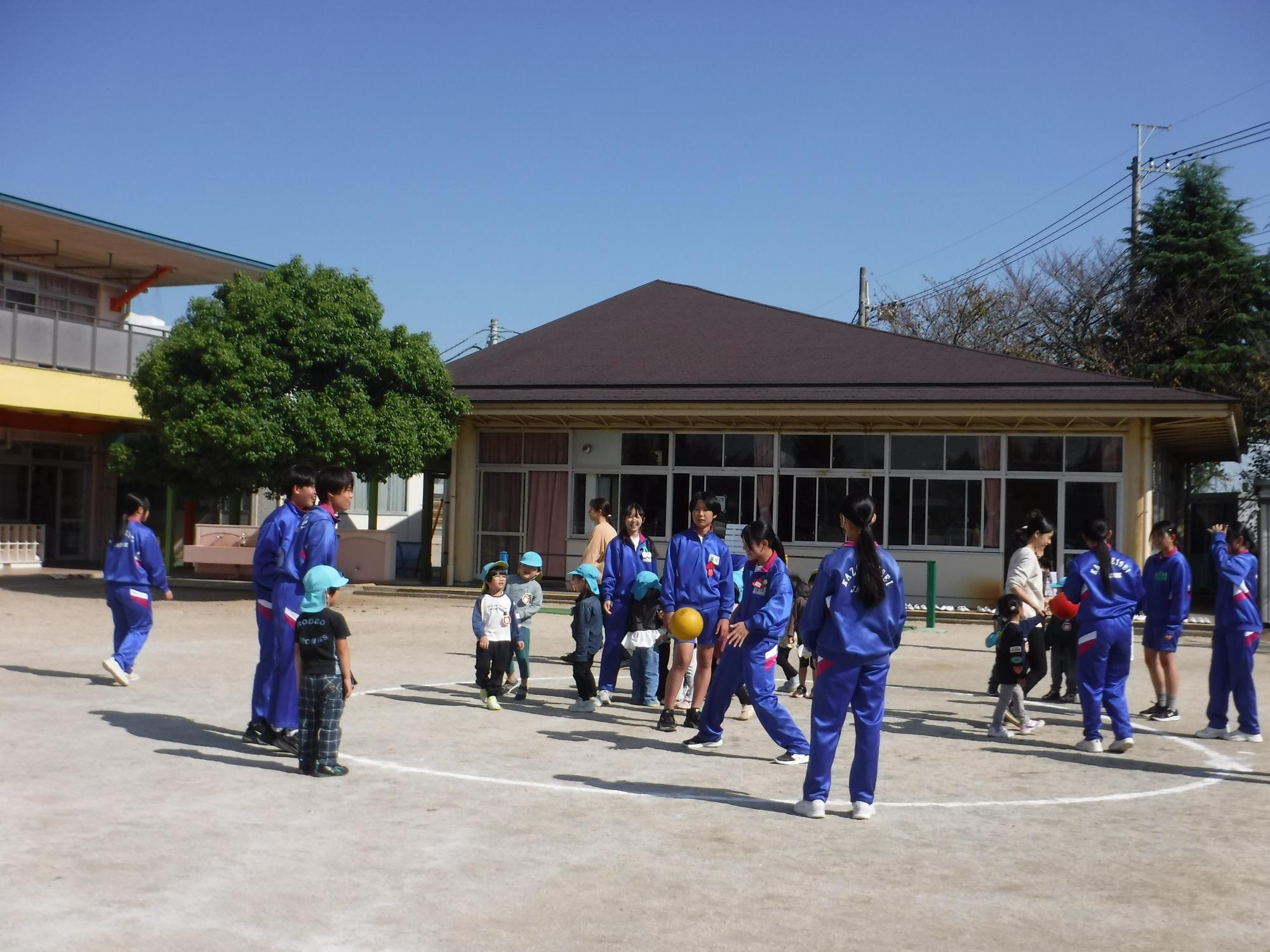 帰る前に、園庭で一緒に遊びました。