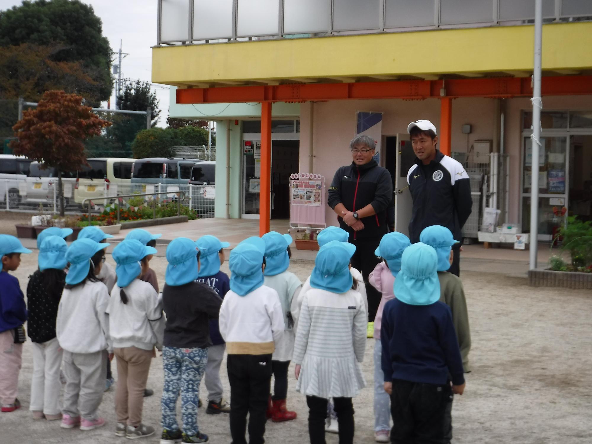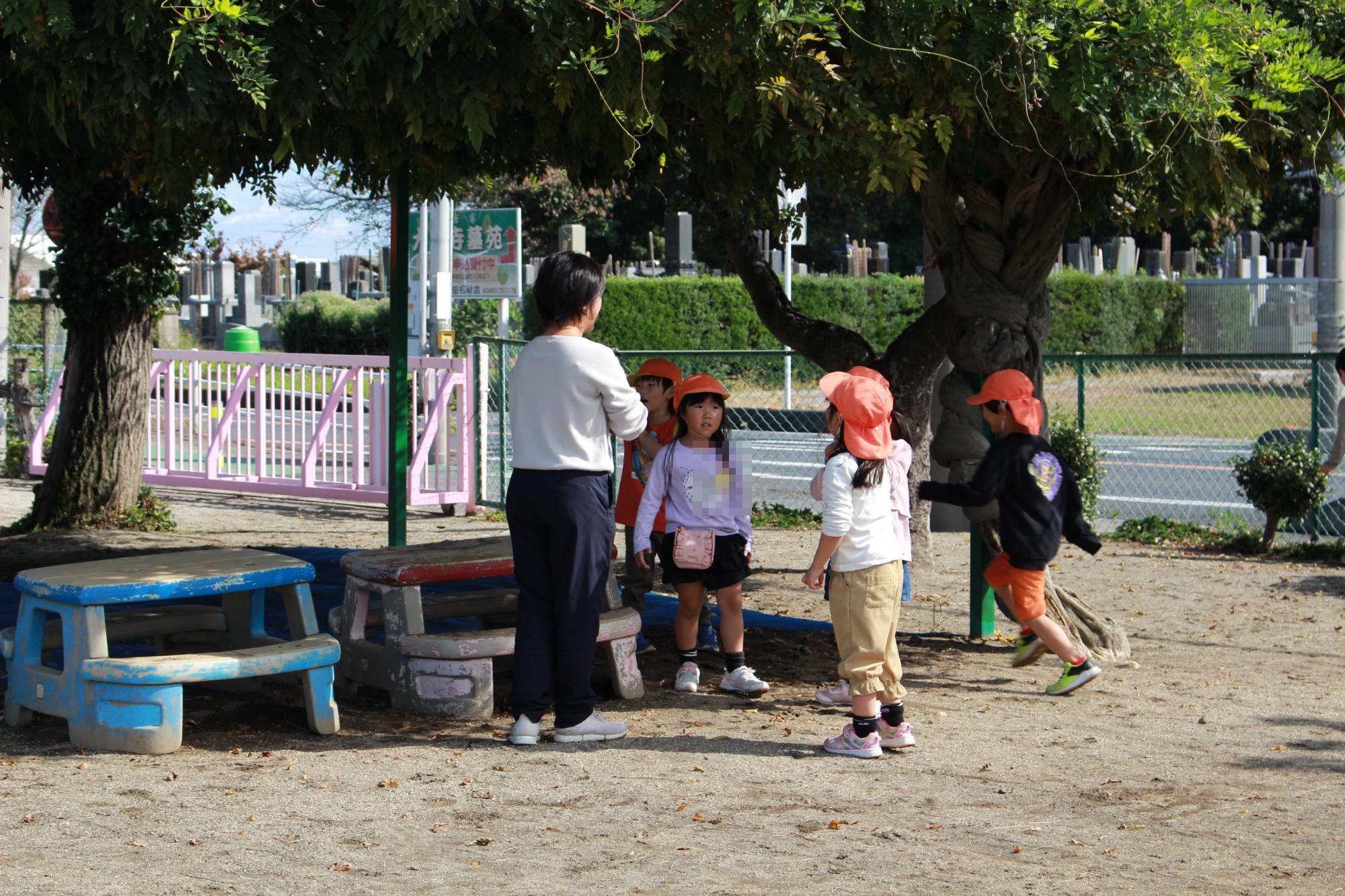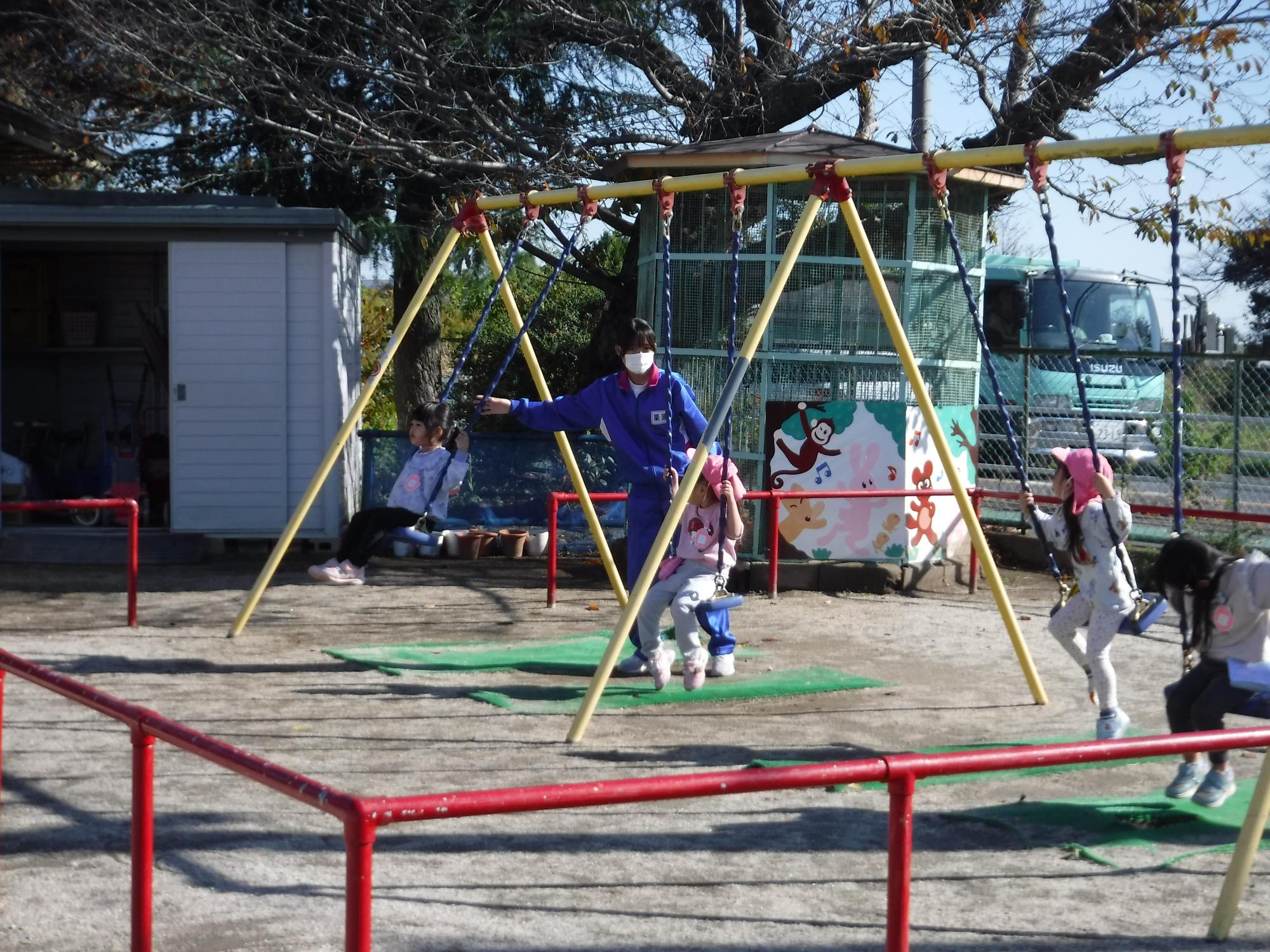 帰る前に、園庭で一緒に遊びました。