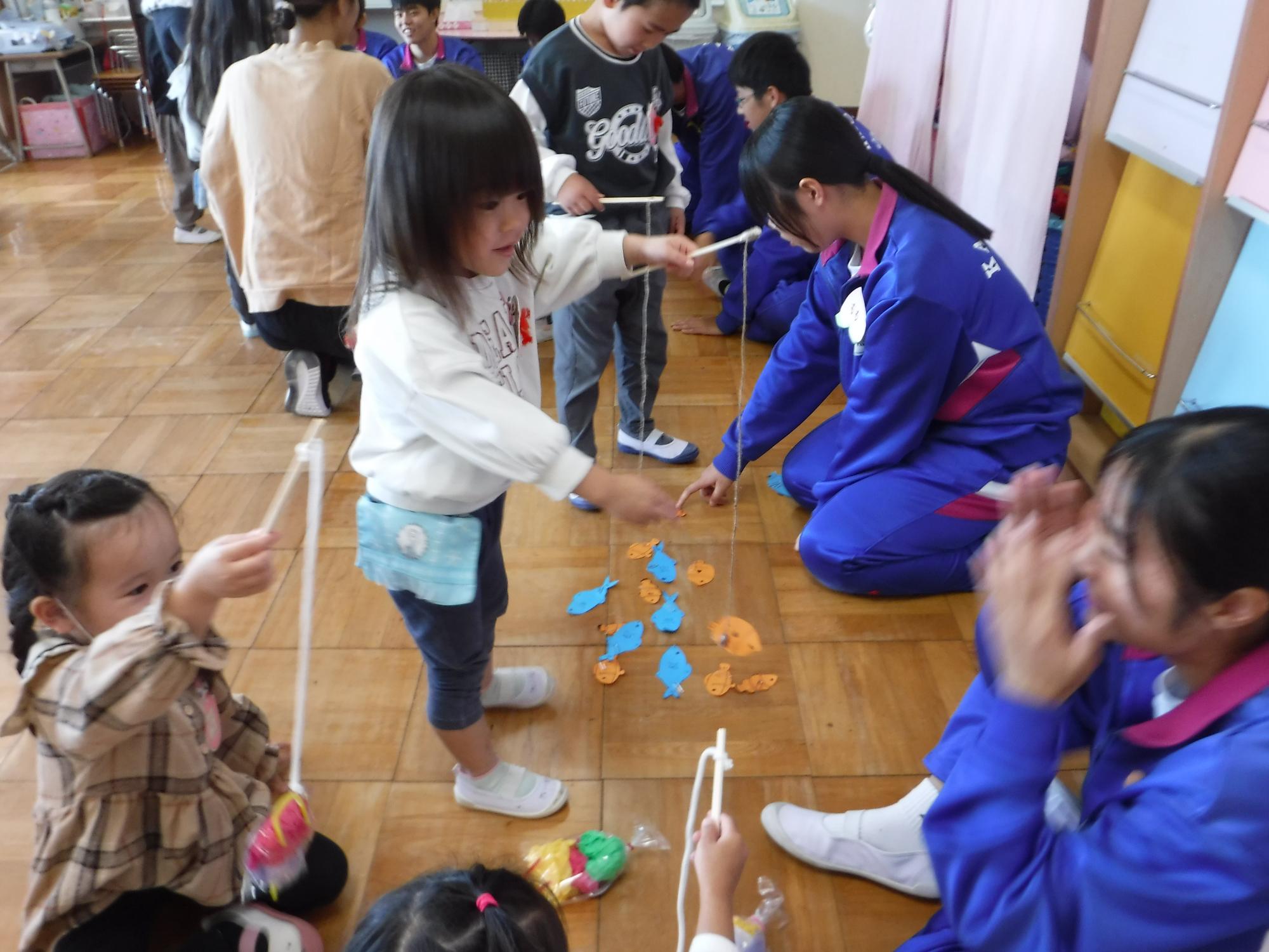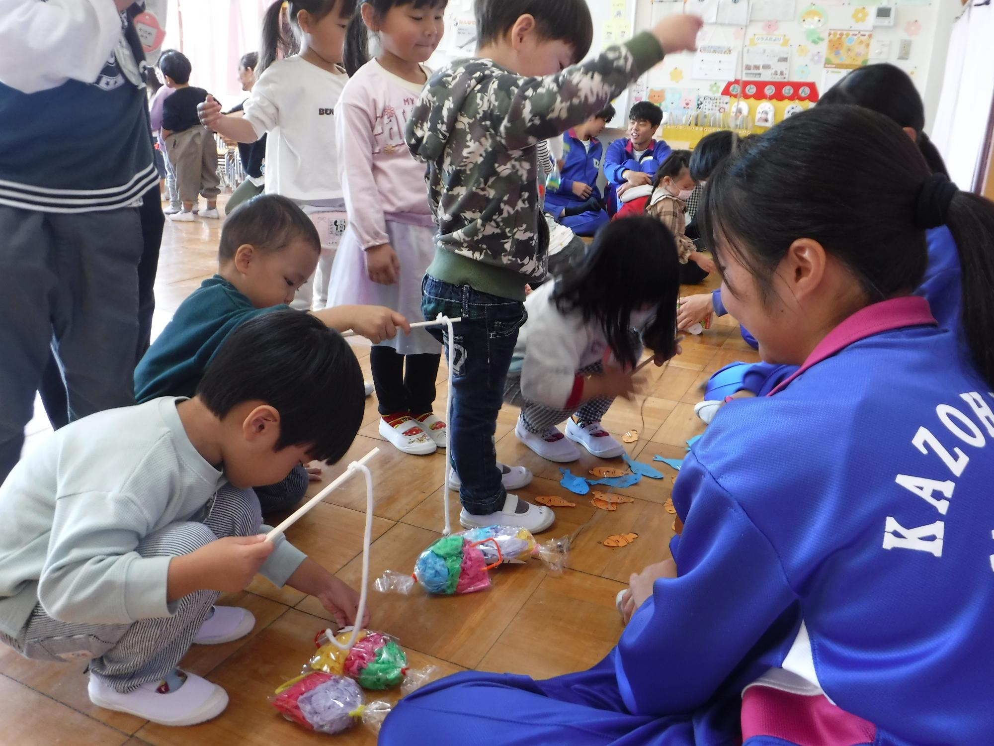 「魚が釣れたよ!」磁石やモールを使った魚釣りなどがありました。