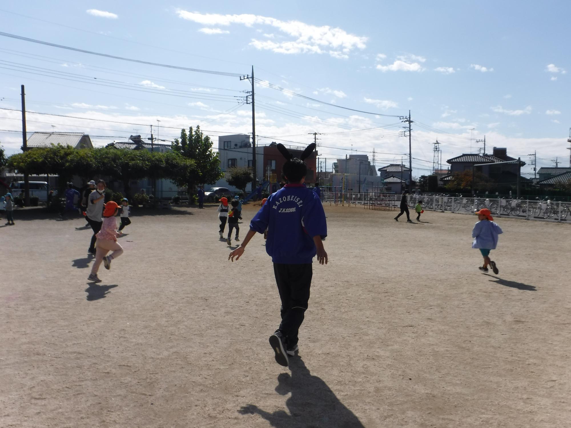 じゃんけん列車もしました。中学生も入り、長い電車ができました。(りす組)