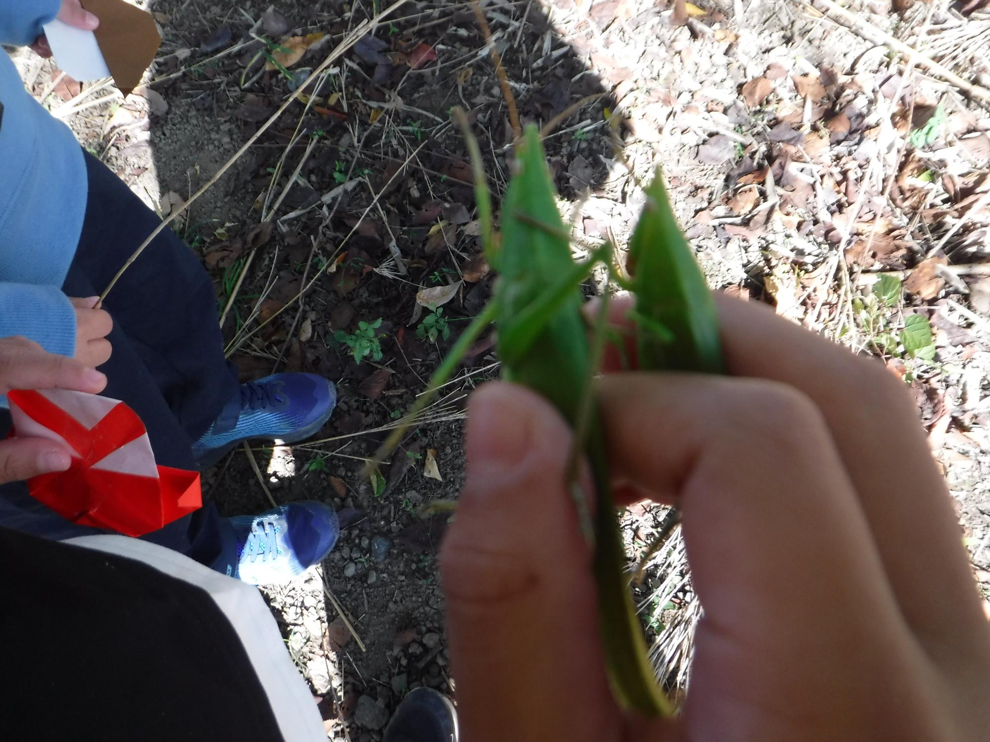 「あっ!こんなに大きなばったを見つけたよ!」