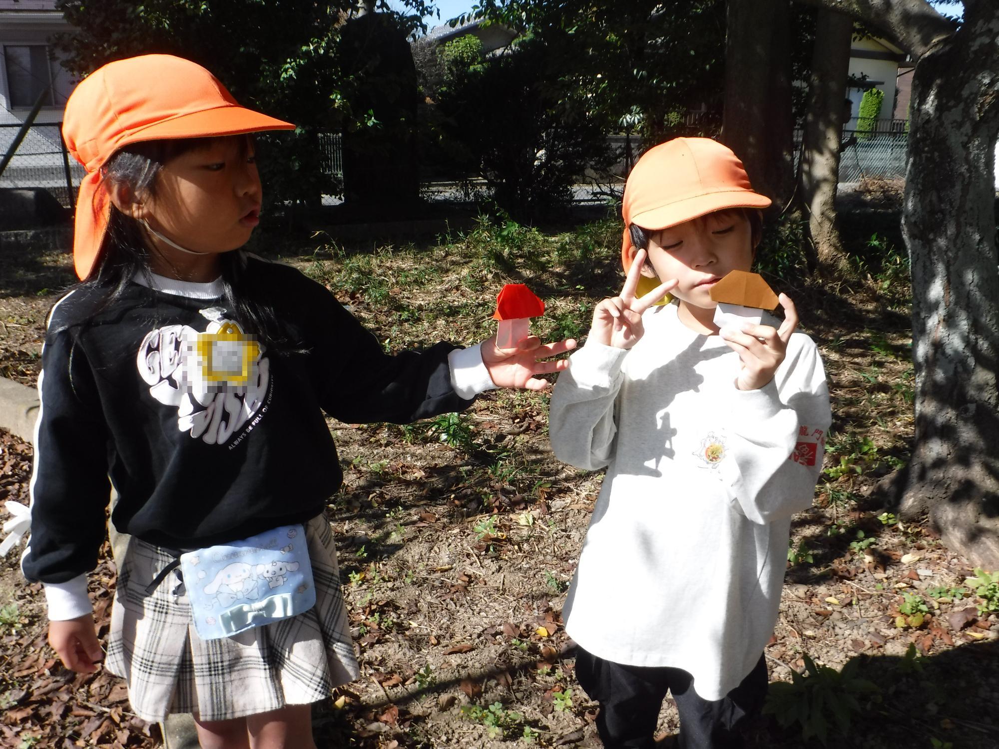 「赤いきのこみ~つけた!」「僕のは茶色いきのこだよ!」