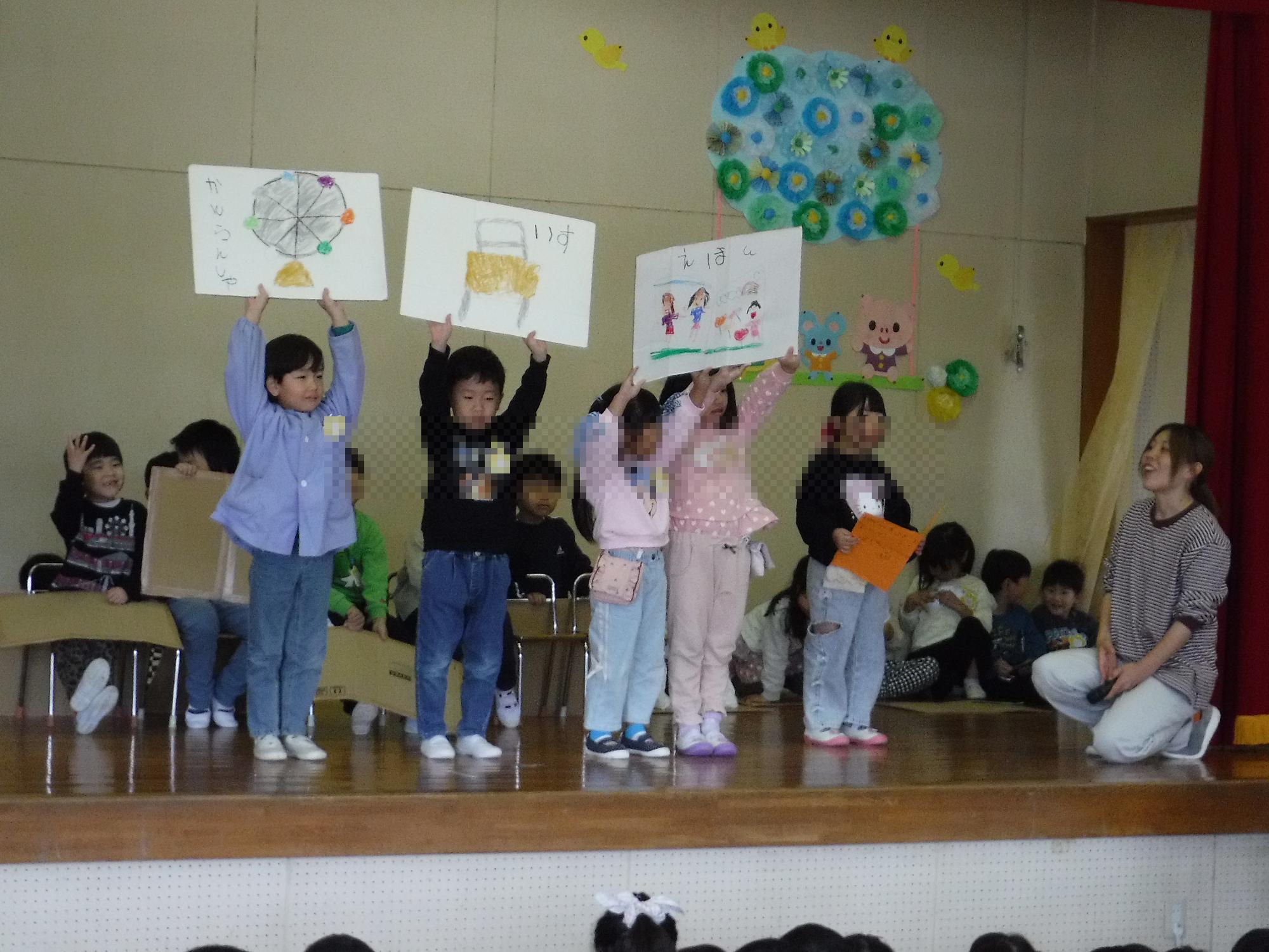 今月は、年長さんが考えたクイズを皆で楽しみました。楽しかったですね。