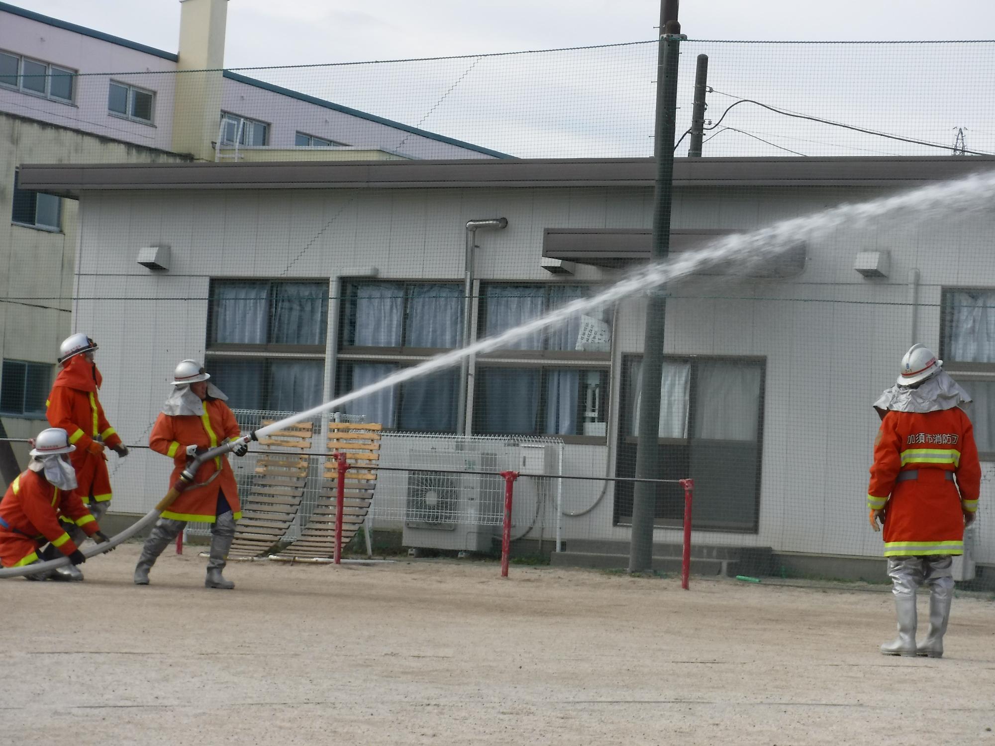 放水の様子に、こども達は目が釘付けです。水の勢いがすごかったですね。