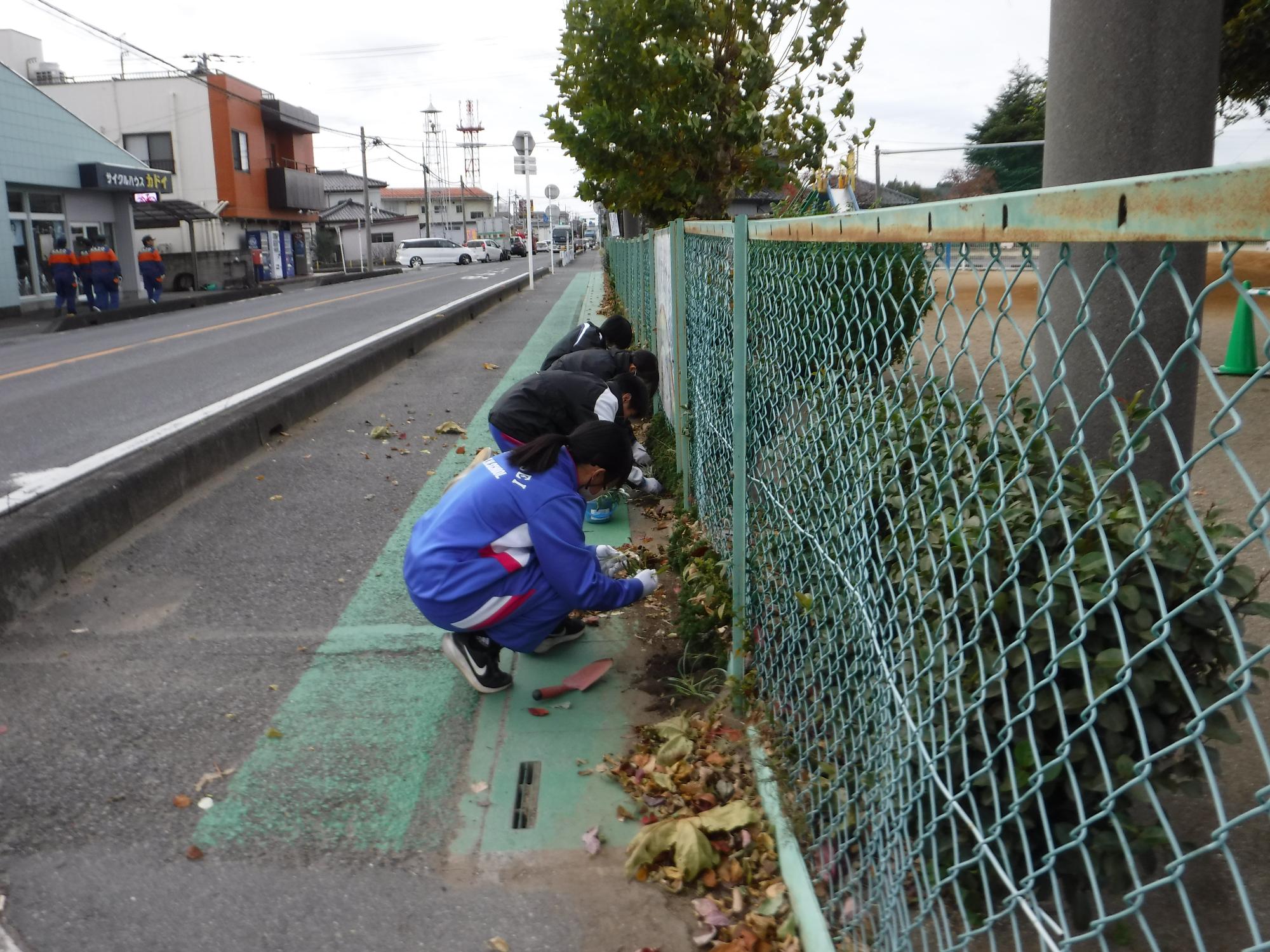 園庭の落ち葉掃きや、花の苗植え…