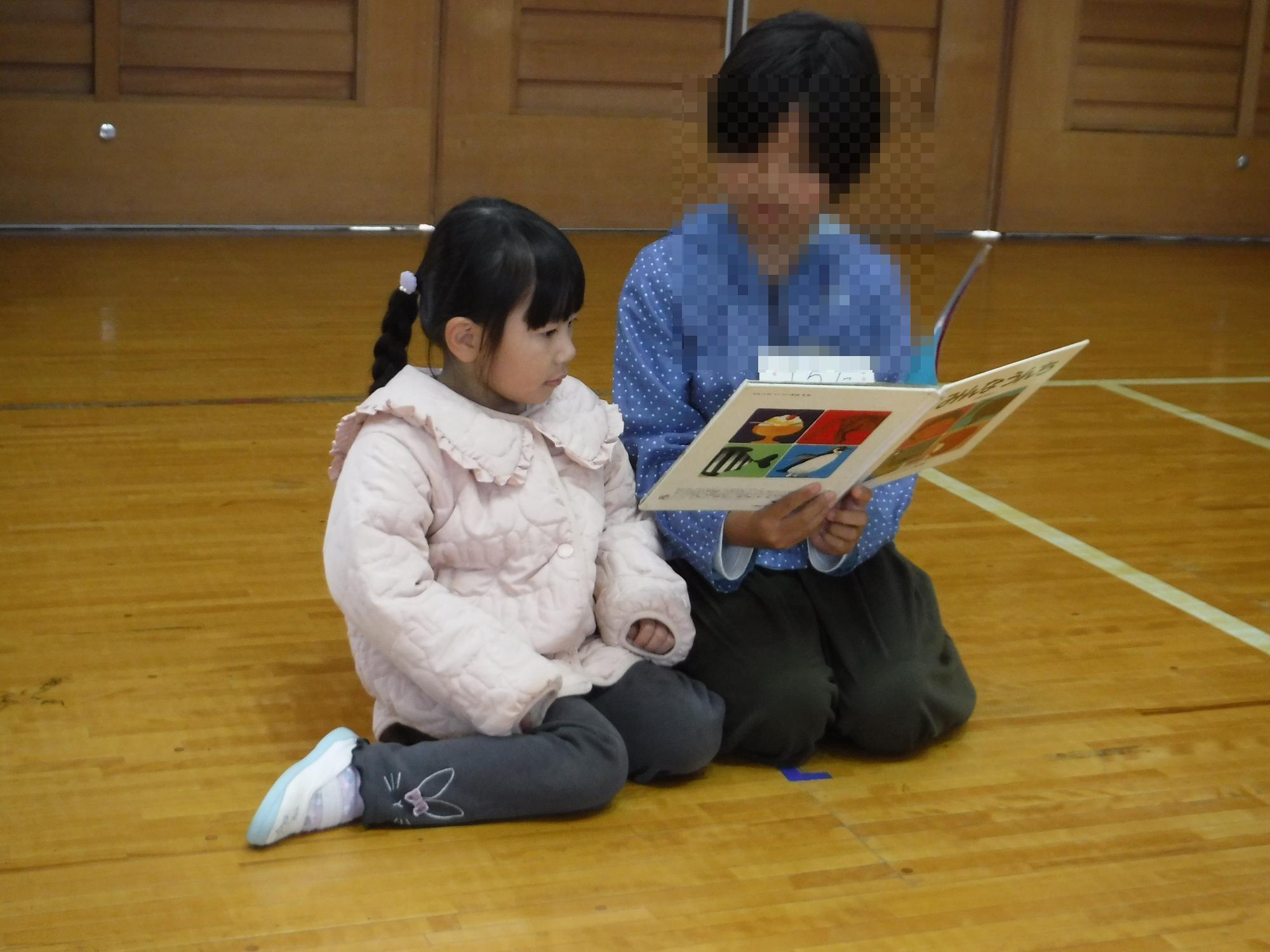 4年生に絵本の読み聞かせをしてもらいました。園児一人に、4年生が1~2人ついてくれ、園児に合ったお話を選読んでくれました。