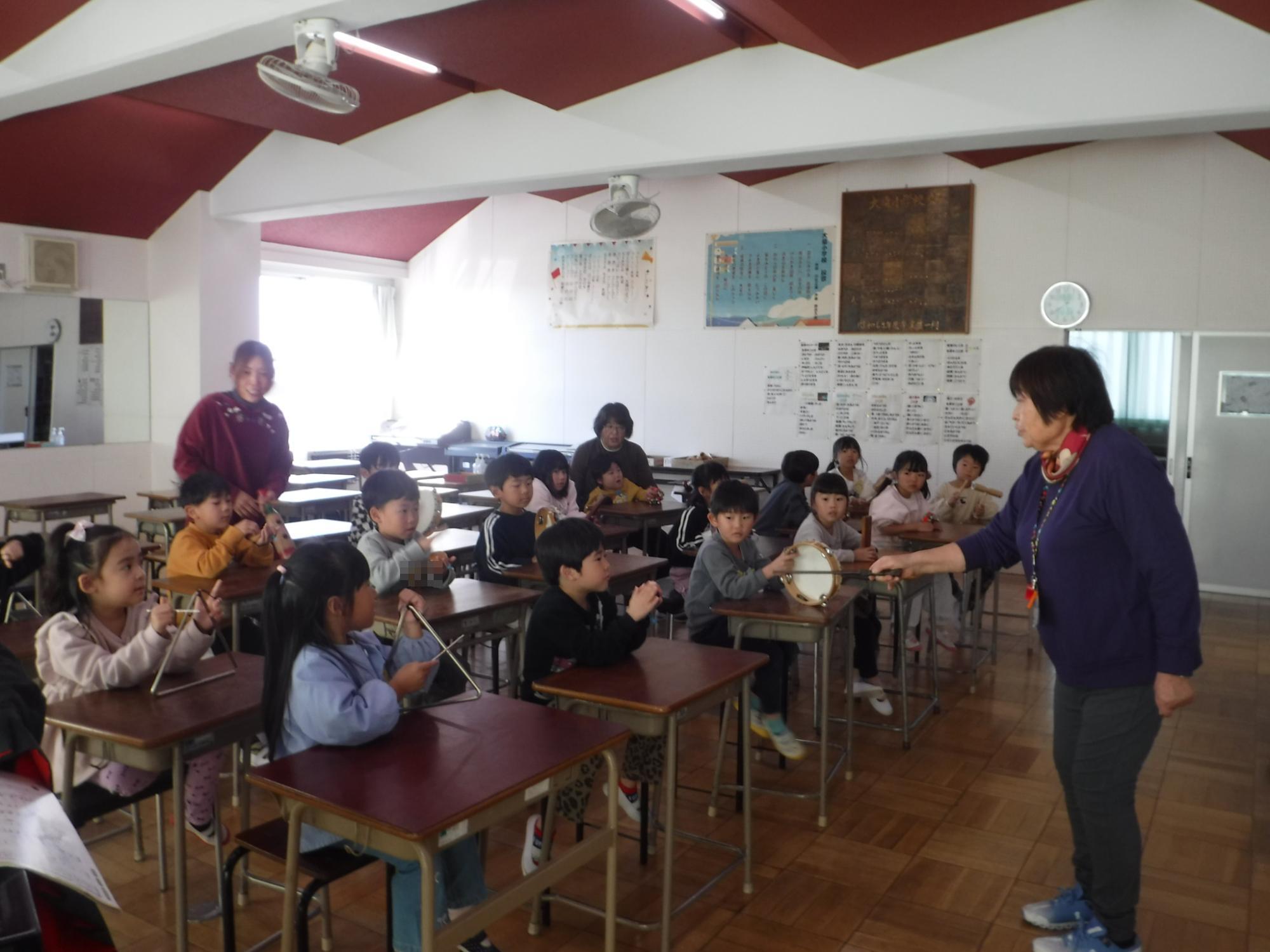 いろいろな楽器を使って、合奏もしました。音の重なりがきれいでしたね。1年生になるのが楽しみになりました。