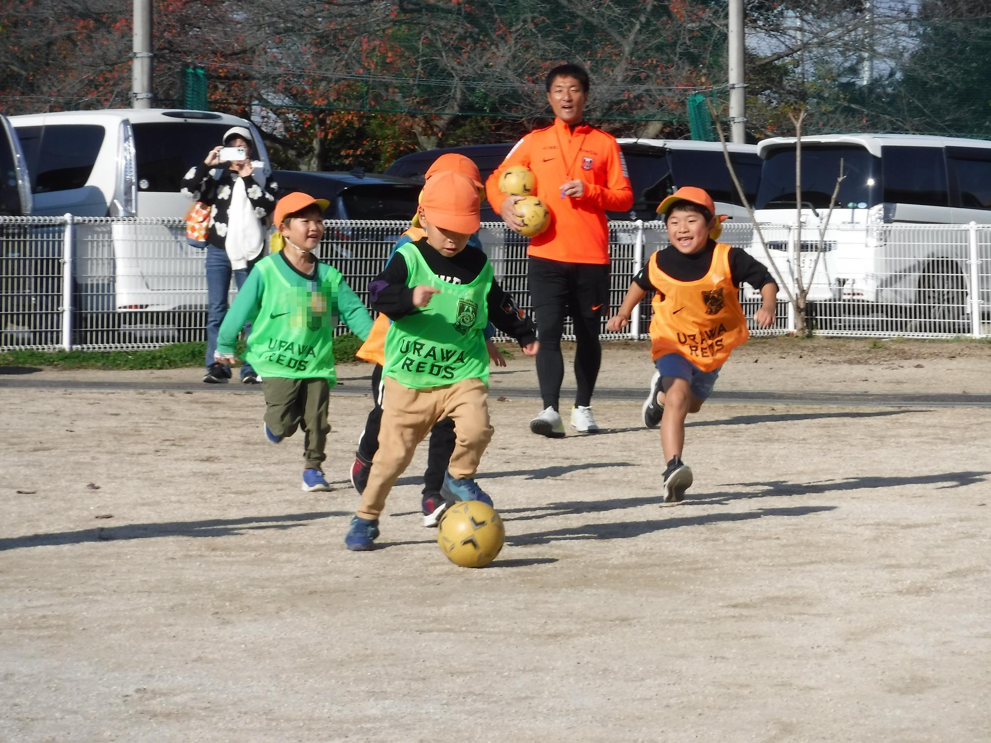 ボールを追いかけるスピードや、けり方がさすが年長さんです。
