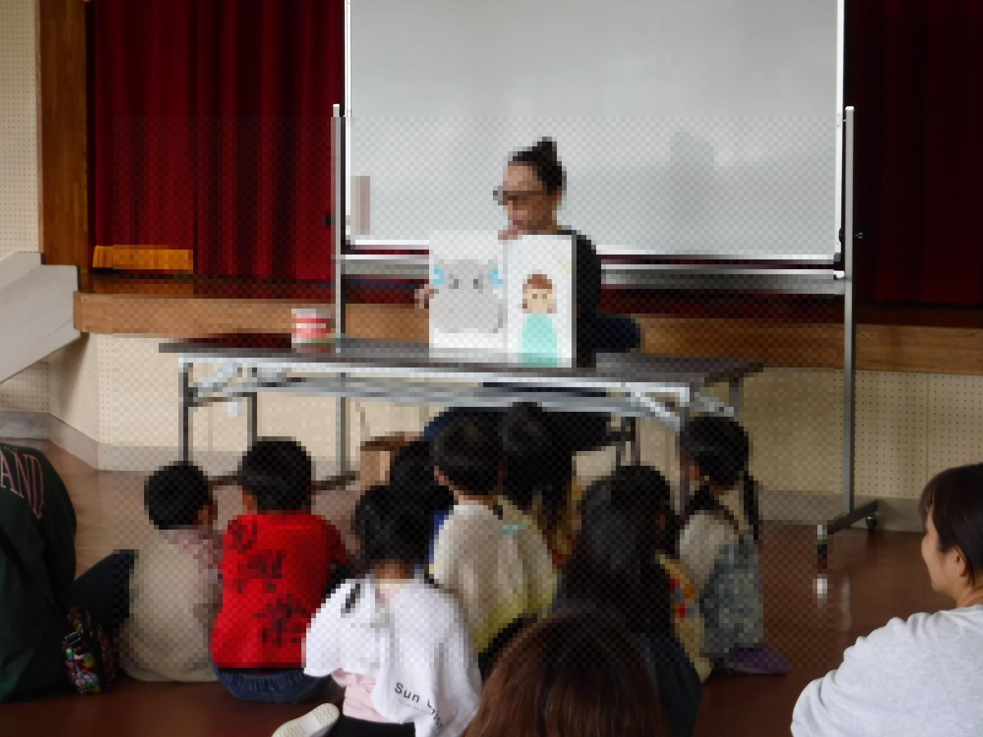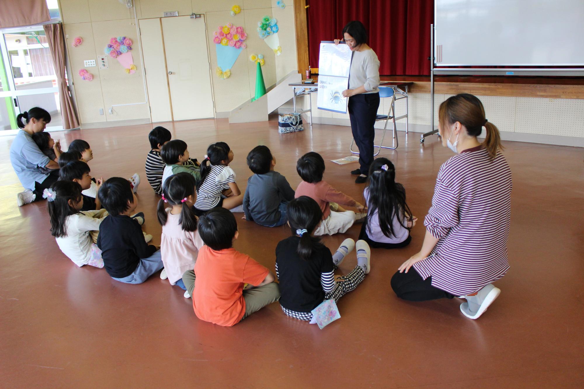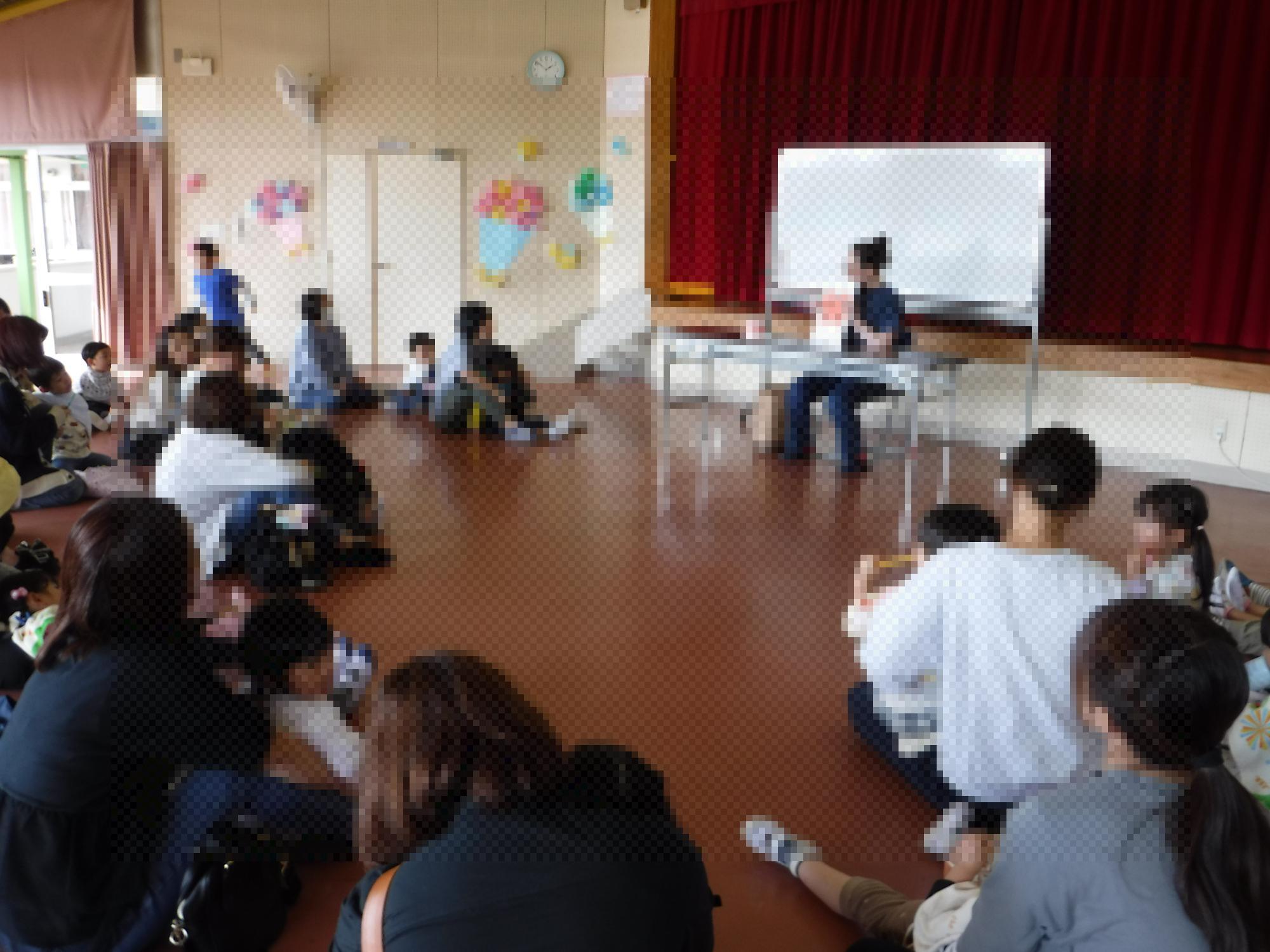 遊戯室では、お話会をしました。絵本や大型絵本、紙芝居などを見ました。とても素敵な時間が過ごせました。