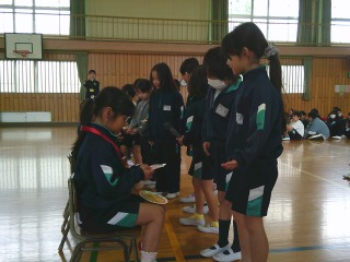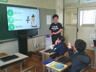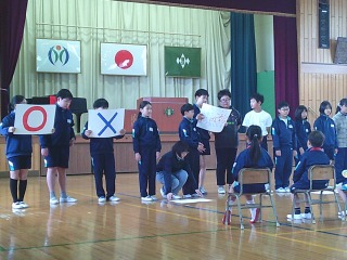 6年生による「1年生を迎える言葉」では、種足小に関するクイズをみんなで楽しみました。