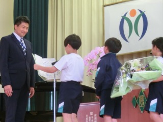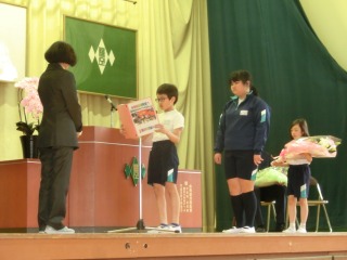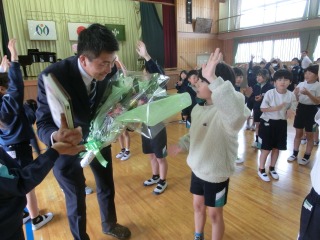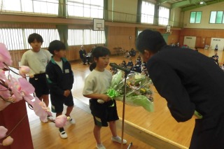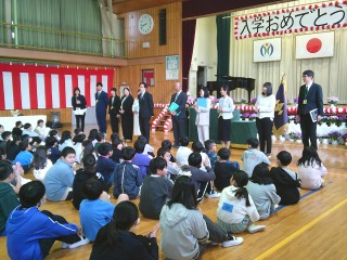 その他、2年生がアサガオの種のプレゼントをしたり、みんなで校歌を歌ったりして、全校児童で1年生の入学をお祝いしました。