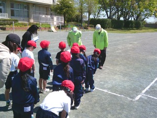 スクールガード・リーダーやふれあい推進長の方の御指導のもと、道路の安全な歩き方を学習しました。