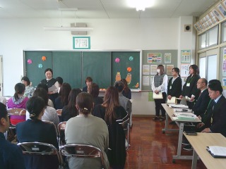 担任発表では、児童も職員も新たな出会いを楽しんでいました。