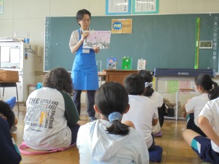 騎西図書館の司書の方が、読み聞かせや本の紹介を行ってくださいました。