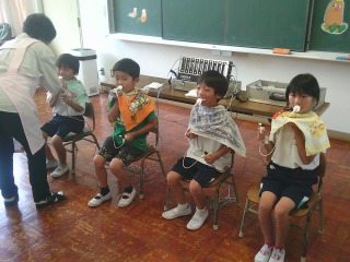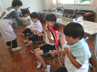 6月20日(金曜日)1、2年生が、むし歯の予防を目的に、フッ素塗布を行いました。
