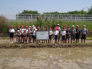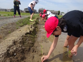 6月6日(金曜日)、5年生とひまわり学級の児童が田植え体験を行いました。