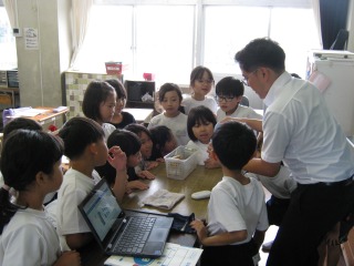 6月24日(火曜日)、6年生社会の学習で、県立さきたま史跡の博物館の学芸員と博物館職員の方をお招きし「なるほど古墳時代」と題した出張授業を行いました。