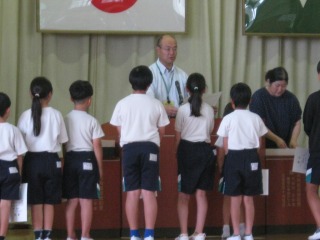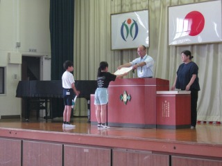 硬筆や空手の表彰の他、自学自習賞の表彰を行いました。