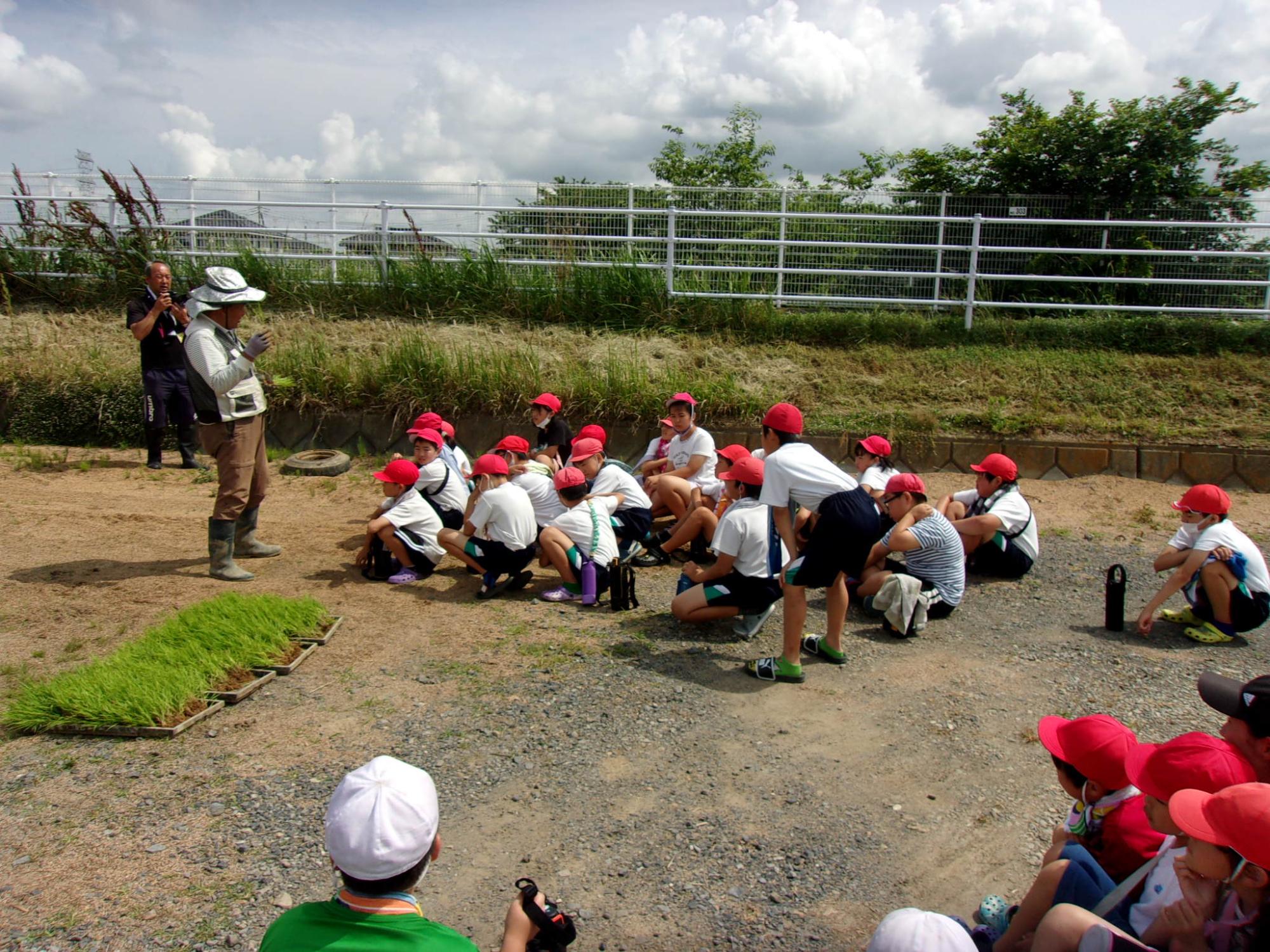 6月5日(水曜日)5年生、ひまわり学級の児童が、学校ファームで田植えをしました。いつもお世話になっている石川さんに苗の持ち方や植え方を教わり、水田に入り、一本一本丁寧に植えていきました。田植えした後はどの児童も達成感を感じていました。秋には稲が無事に実って、稲刈りができるといいですね。