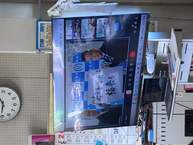 1月16日(木曜日)には、市役所と学校をオンラインでつなぎ、市長さんから新年のあいさつをいただきました。市長さんからは、「笑うかぞには福来たる」という言葉をいただきました。